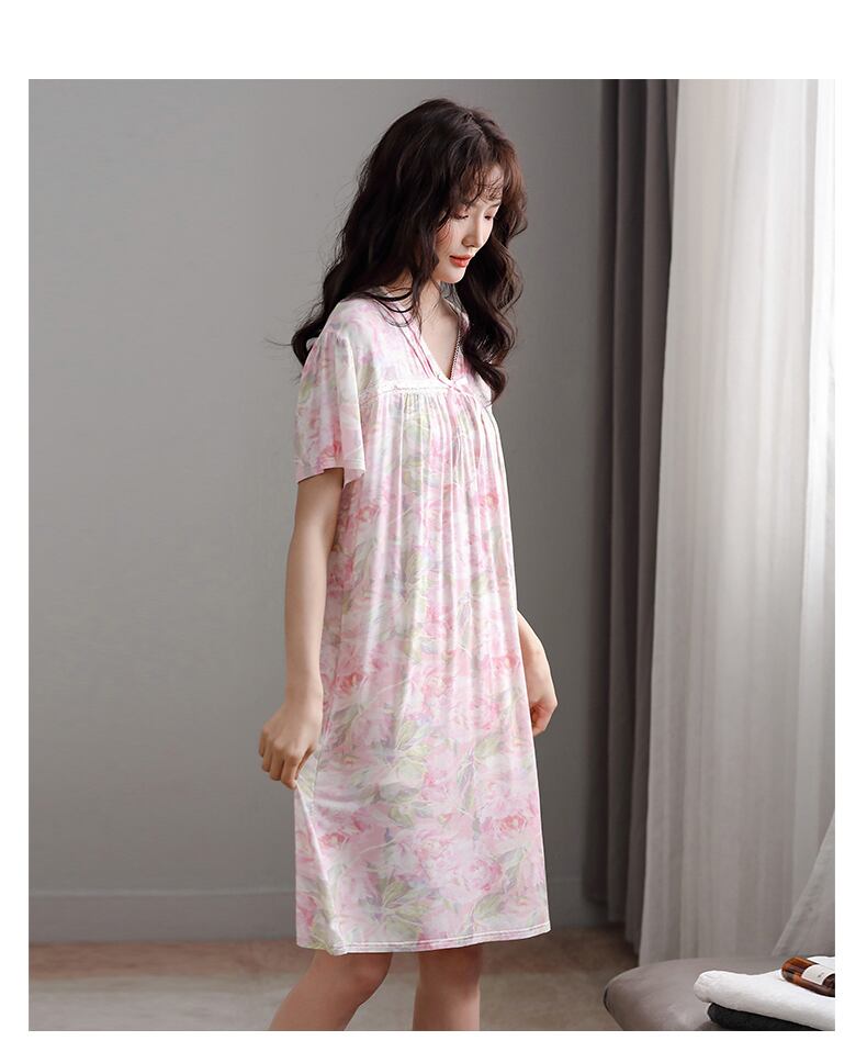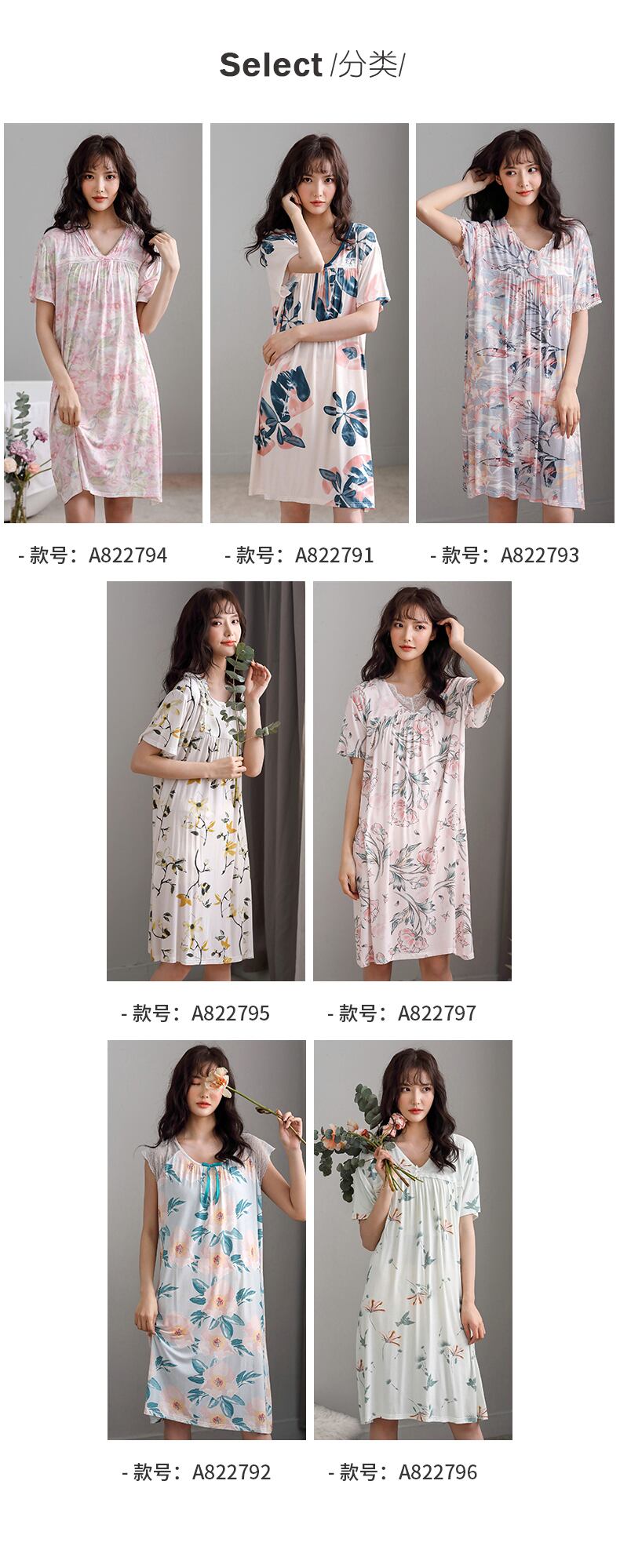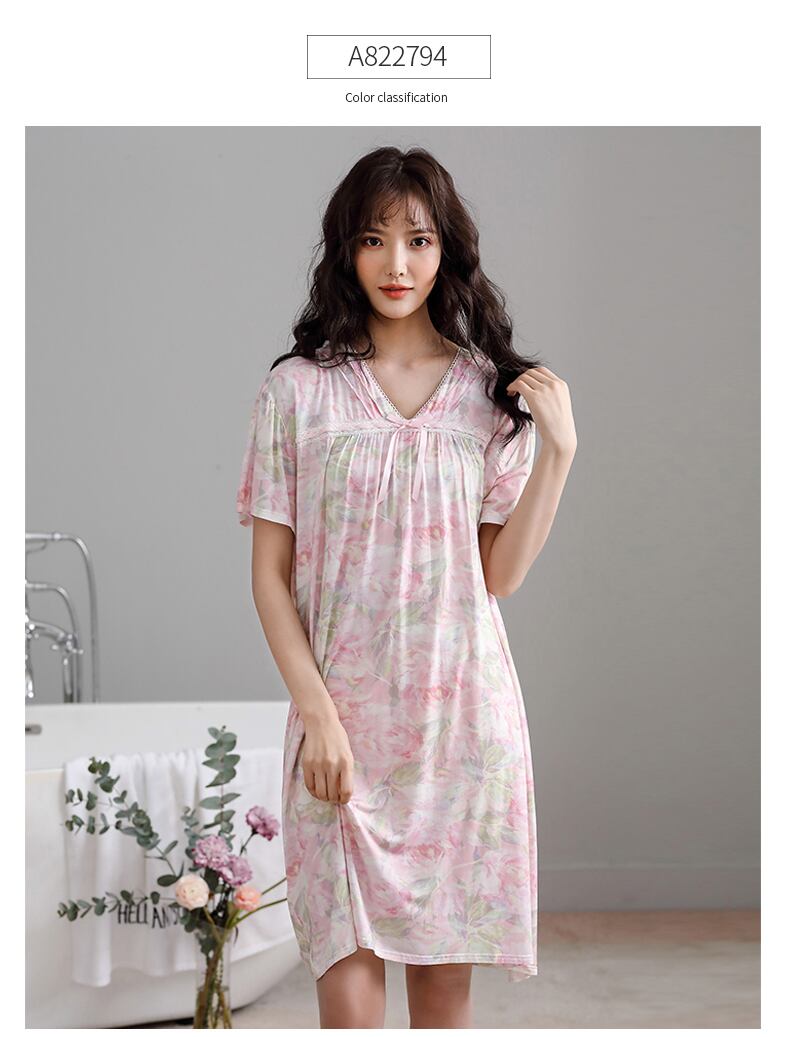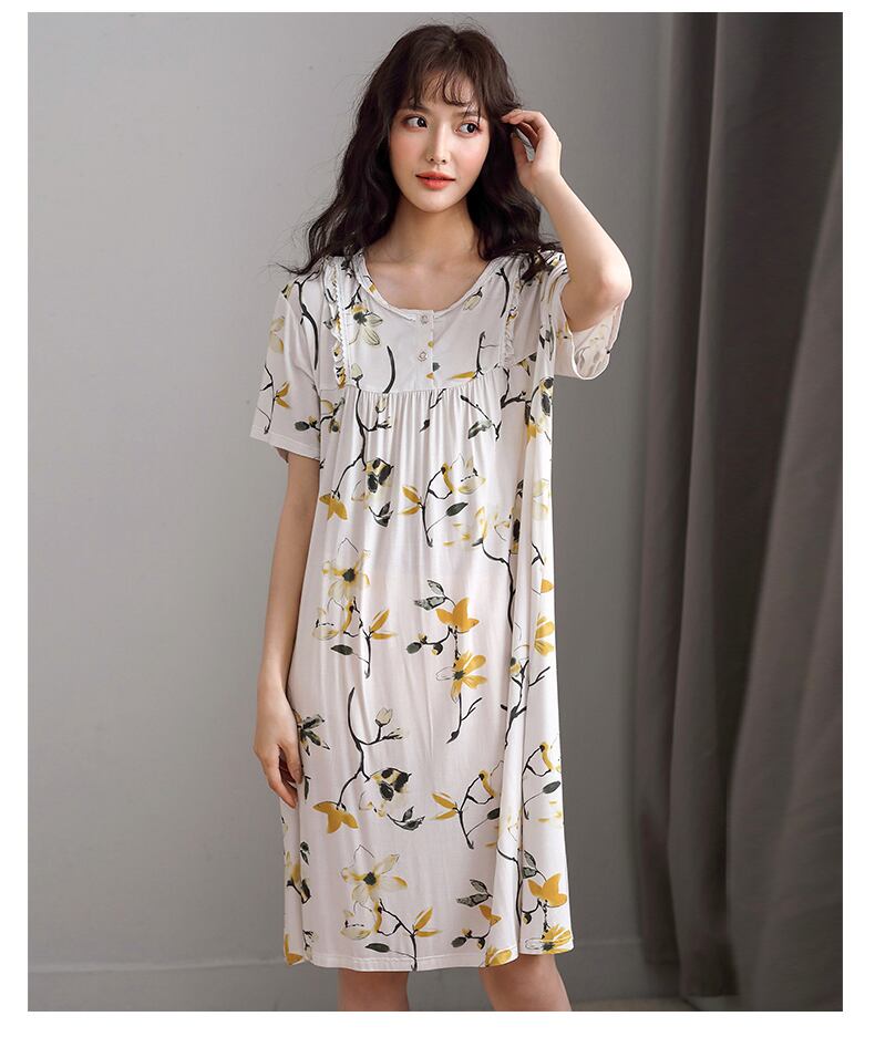 夏のネグリジェレディースパジャマ夏の薄片モーダルコットンシルクマザー妊婦中年中高年プラスサイズ jial68134943517