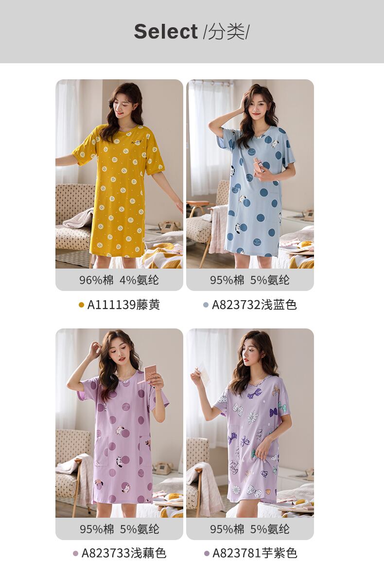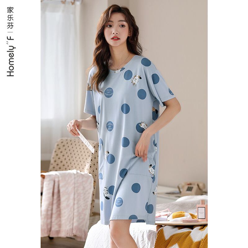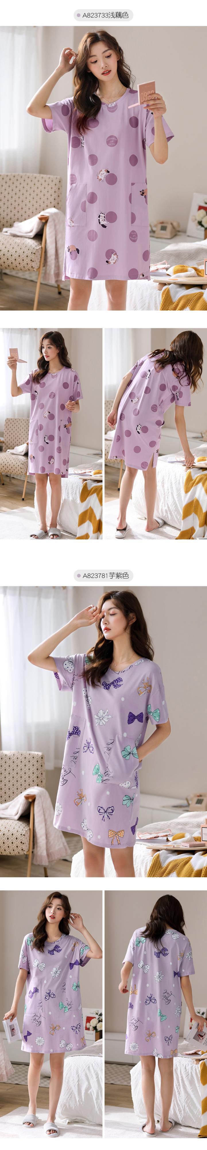 ネグリジェパジャマ夏夏綿半袖薄片かわいい妊婦ゆったりプラスサイズドレスミッドスカート jial15292673719