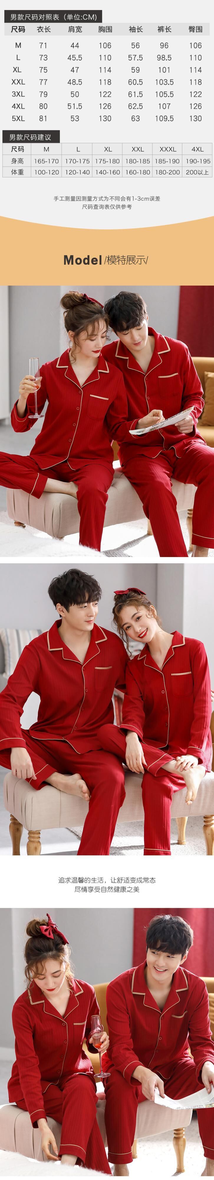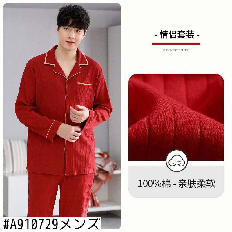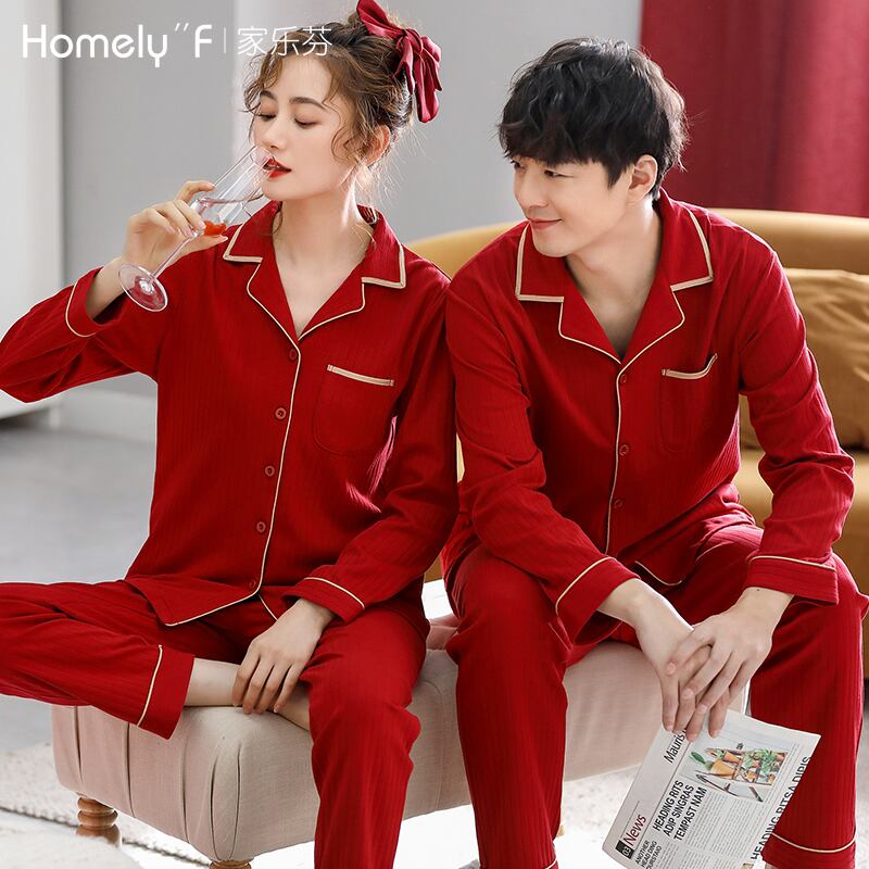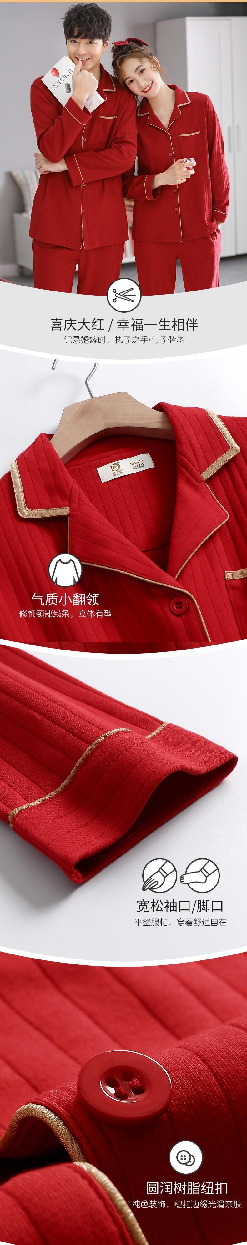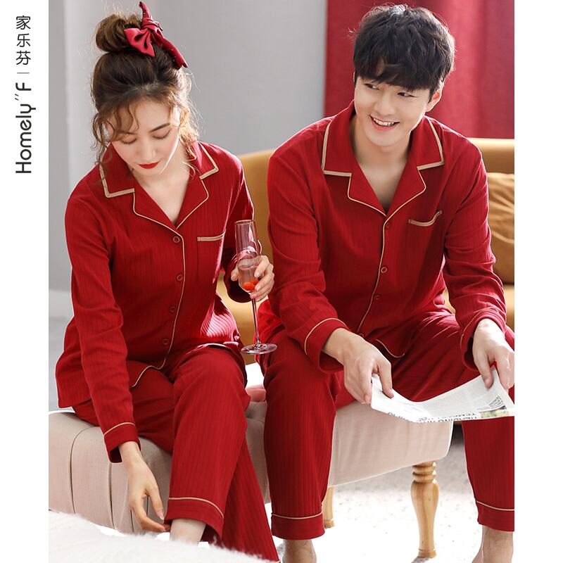 カップルパジャマ女性春秋秋結婚式新婚花嫁大きな赤いお祭りホームサービスメンズコットンスーツ jial13539872752