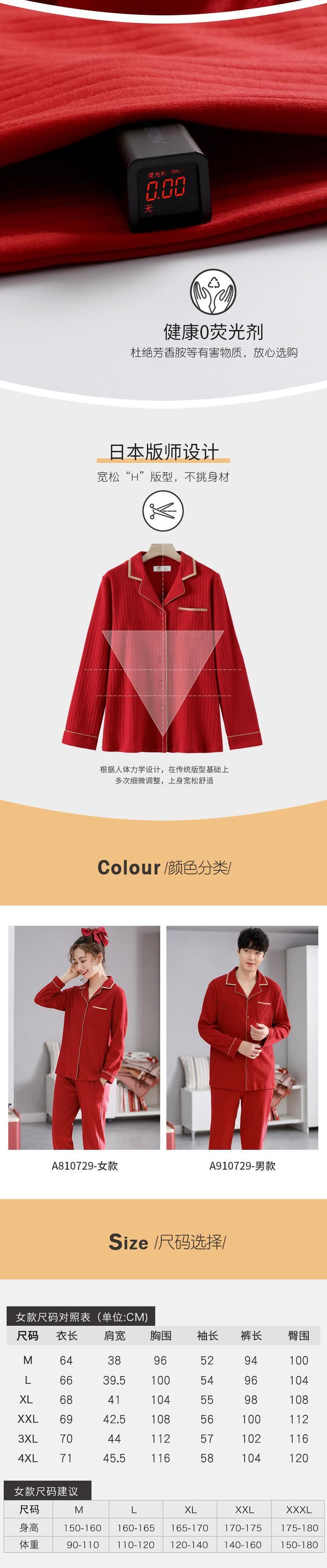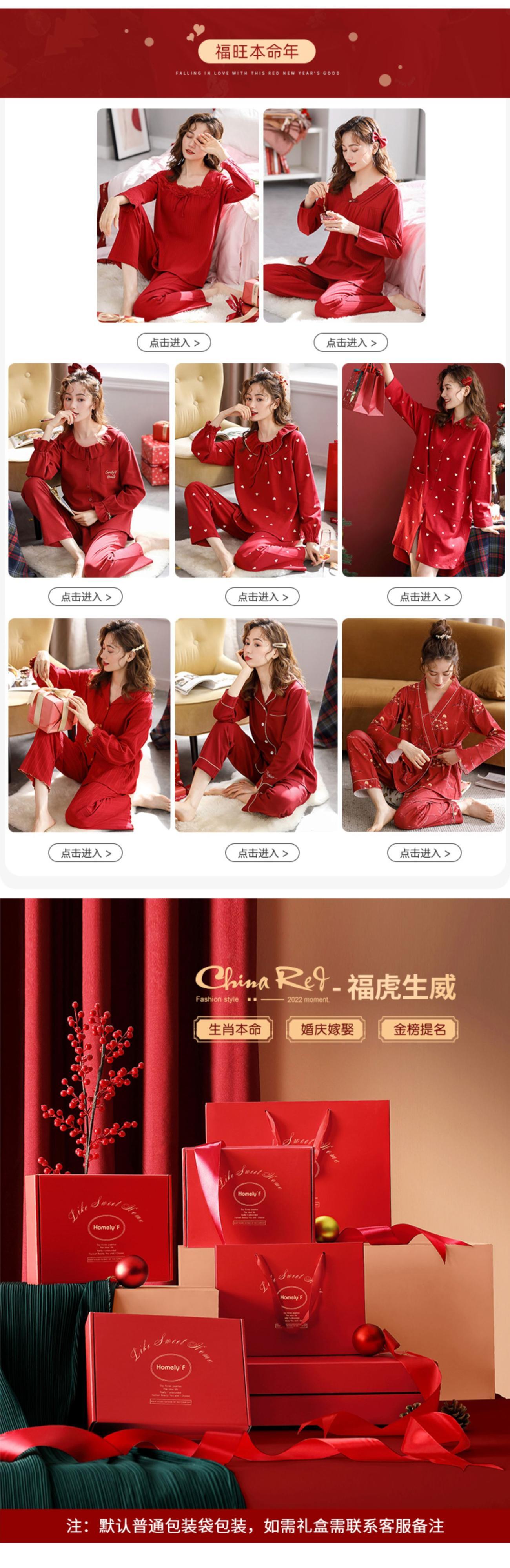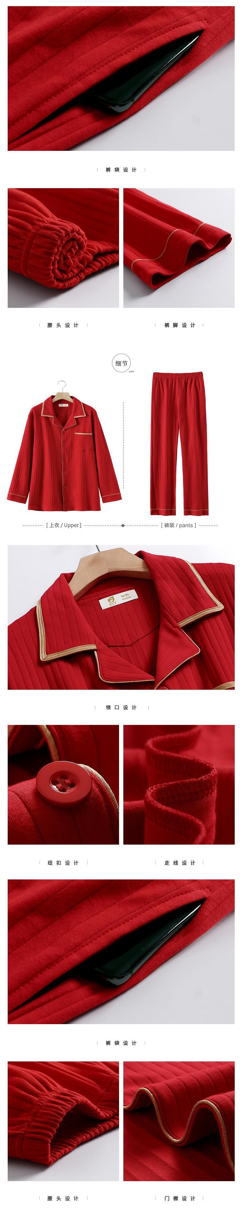 カップルパジャマ女性春秋秋結婚式新婚花嫁大きな赤いお祭りホームサービスメンズコットンスーツ jial13539872752