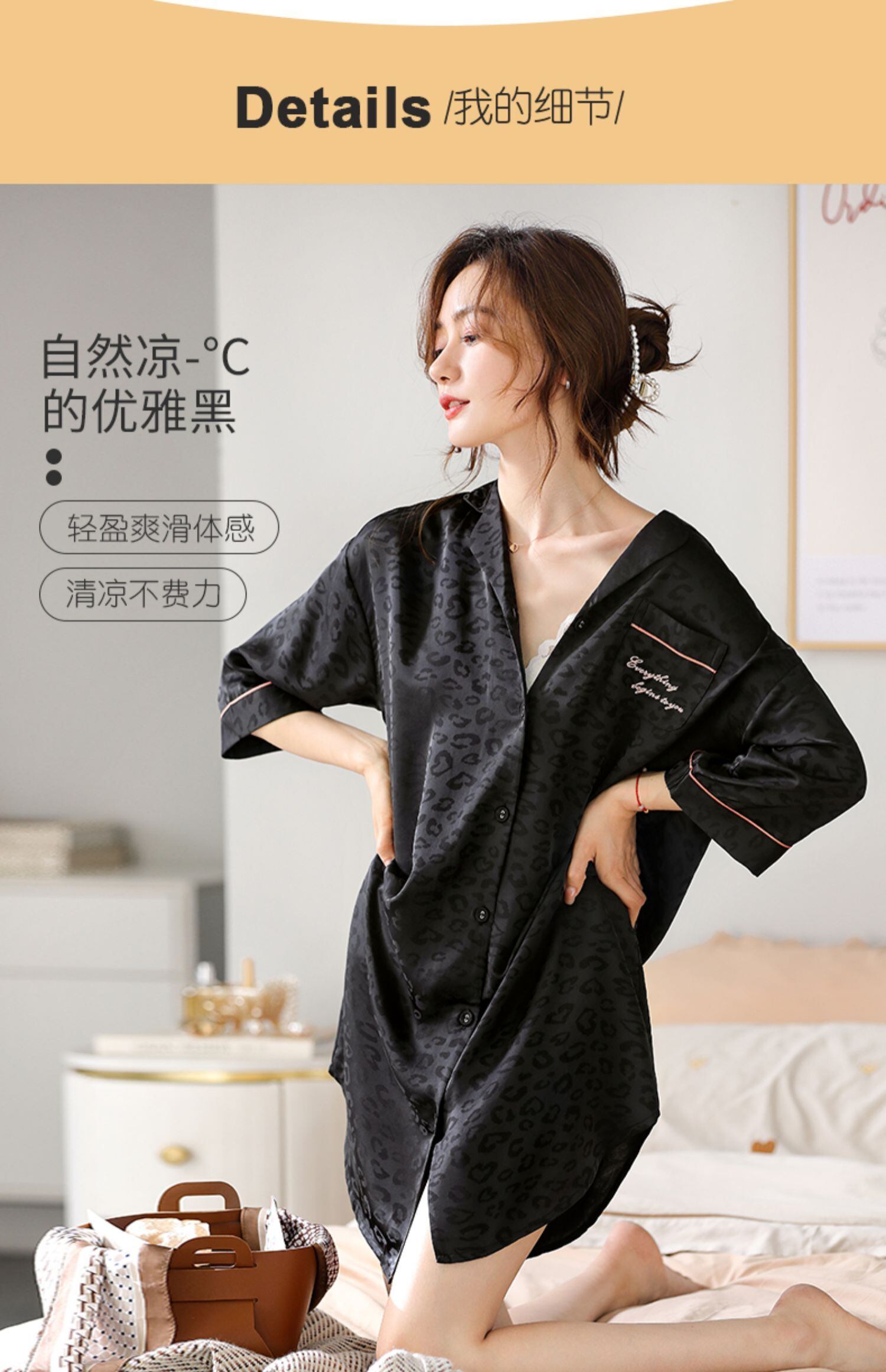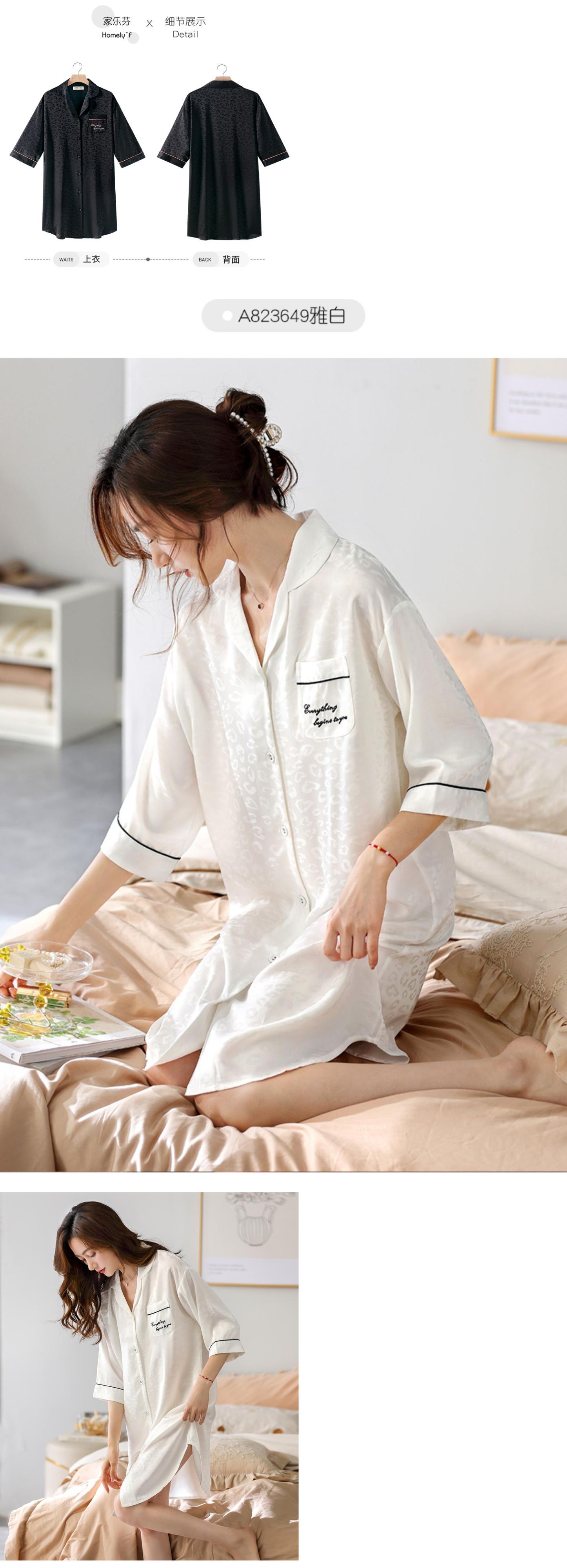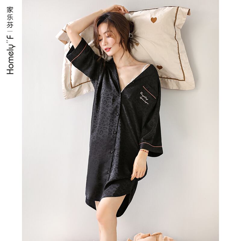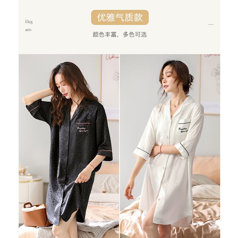 ネグリジェレディースパジャマ春秋シルクアイスシルク薄手七分袖カーディガンシャツシミュレーションシルクヒョウ柄春夏 jial18555241667