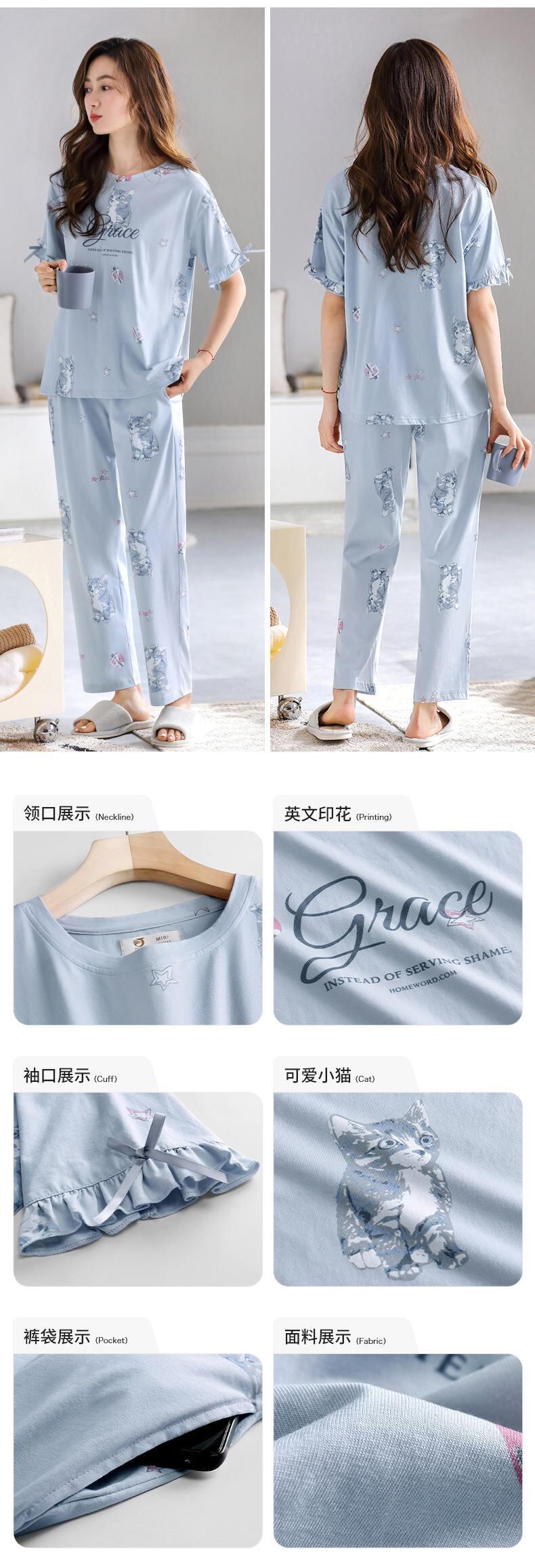 【やわらかい感じ】Jiarefenパジャマレディース夏綿半袖パンツ家庭服夏夏綿スーツ jial74561683232