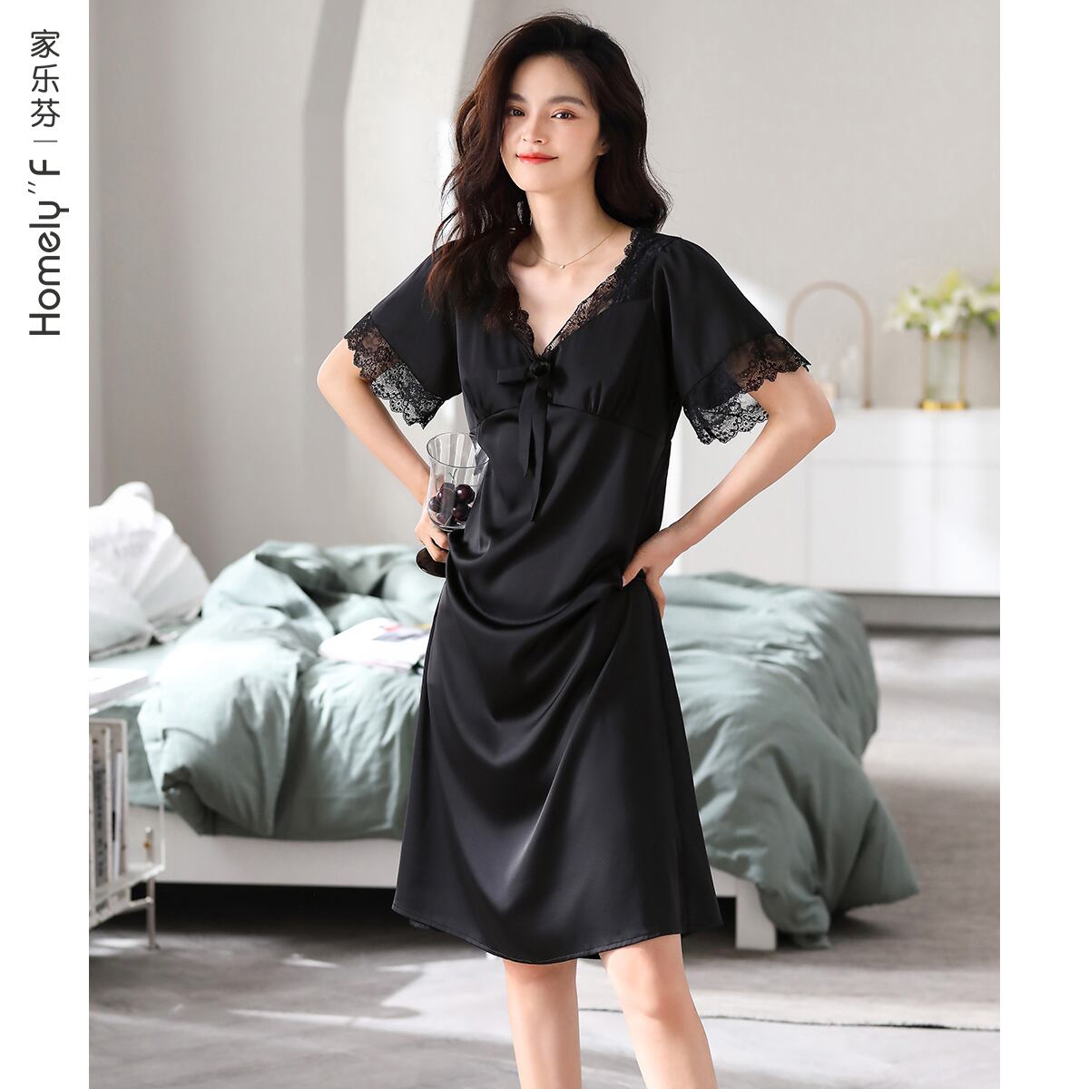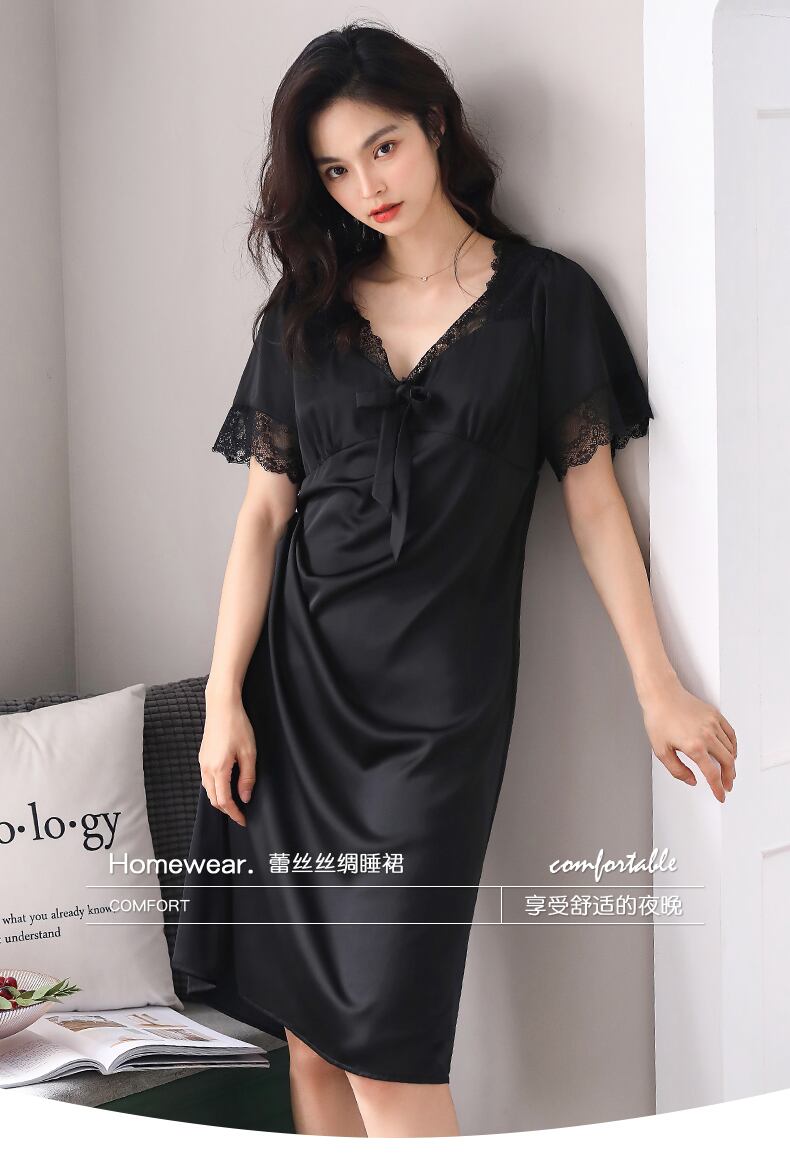 ナイトドレスレディースパジャマ夏夏ハイエンドシルクアイスシルクシミュレーションシルク半袖長袖プラスサイズ宮殿スタイルフレンチスタイル jial15776946836