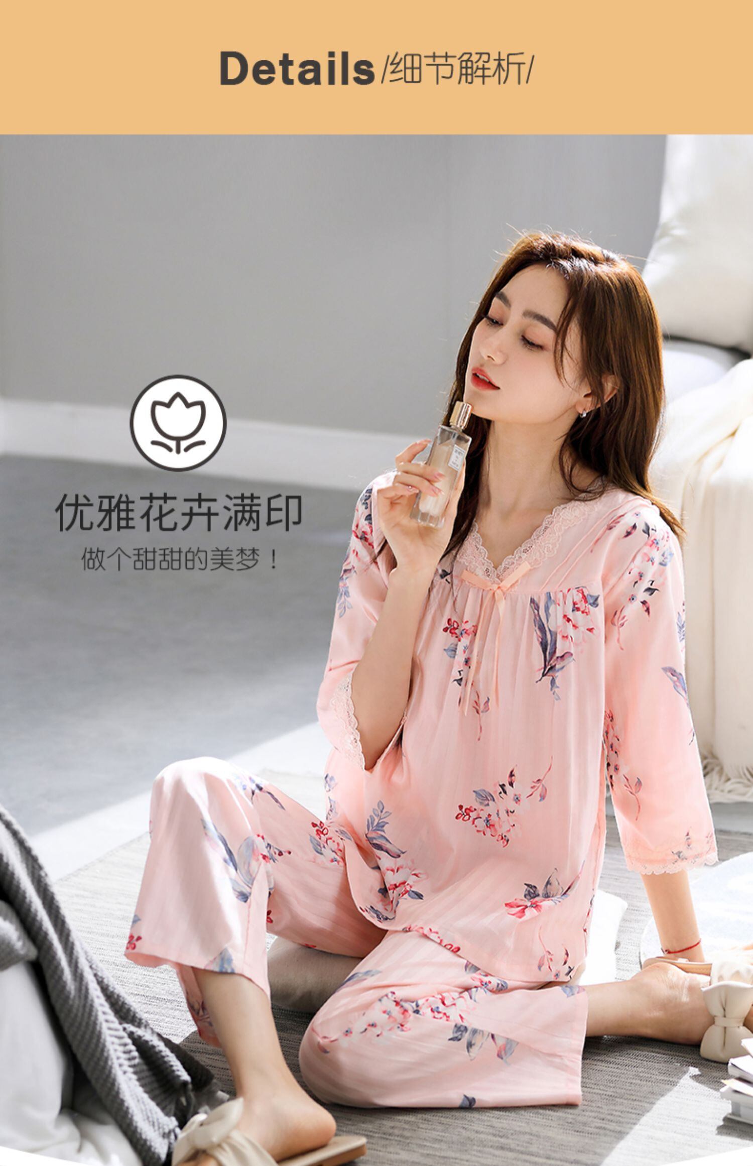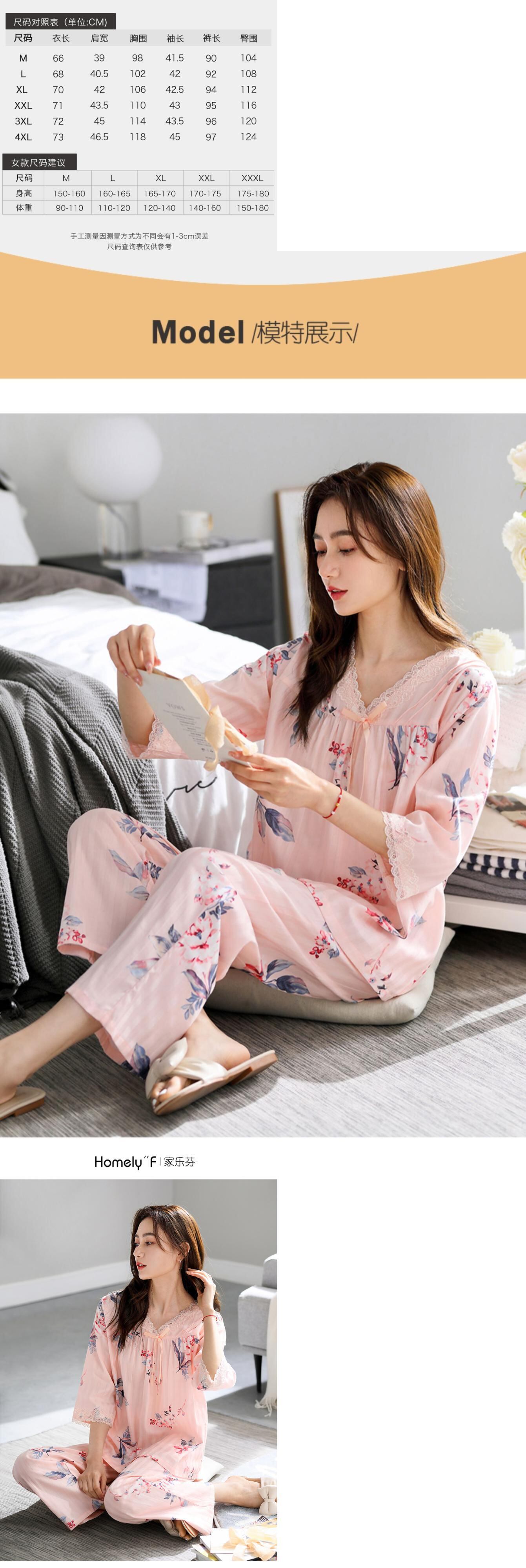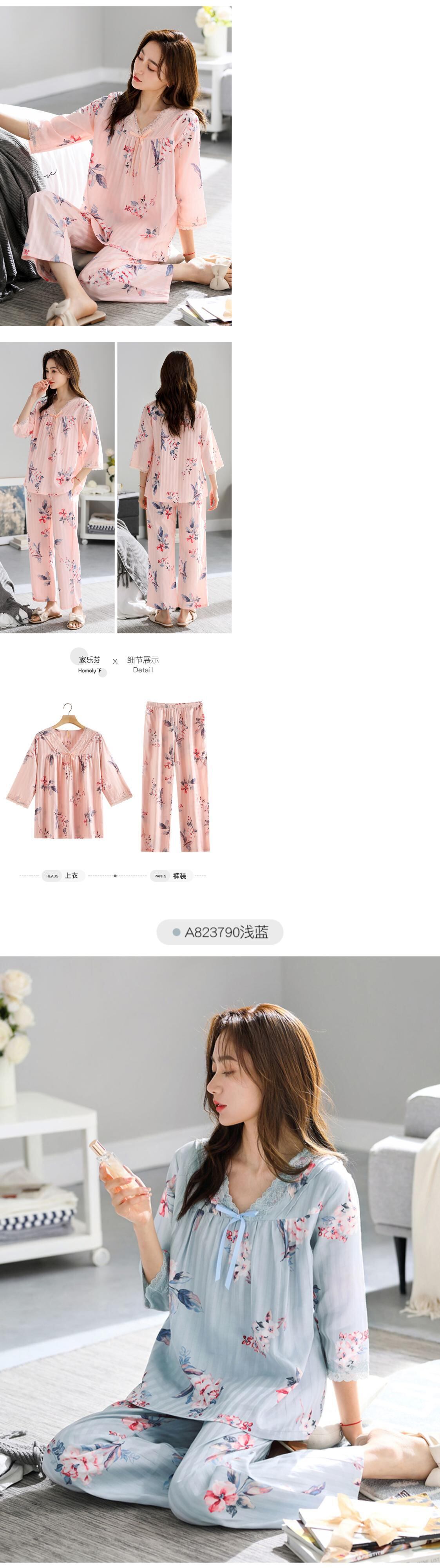 【ガーゼ】Jiarefenパジャマレディース春夏コットン七分袖長袖家庭服春秋お母さん jial90247330102