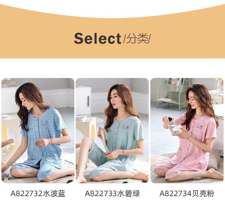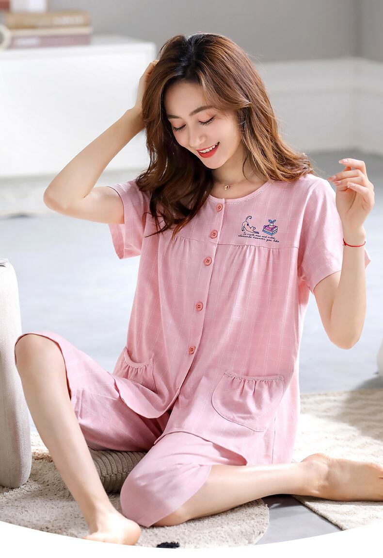 【やわらかい感じ】Carrefineパジャマレディースサマーコットン半袖ショーツクロップドパンツホームサービスサマースーツ jial17849956919