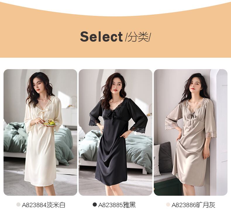 ネグリジェレディースパジャマ春と秋の高品質シルクアイスシルクシミュレーションシルク長袖ロングラージサイズサマーパレススタイルフレンチスタイル jial97014531972