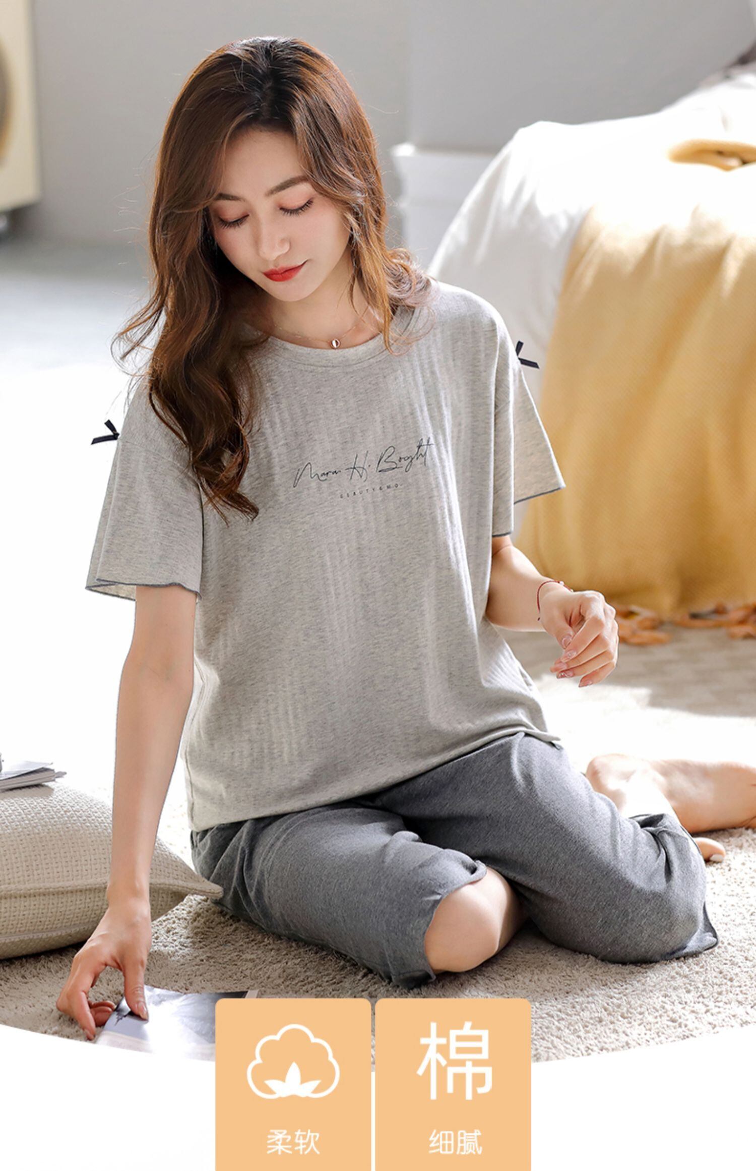 Carrefineパジャマレディースサマーコットン半袖クロップドパンツショーツレディース家庭服夏夏薄手のスーツ jial68960036153