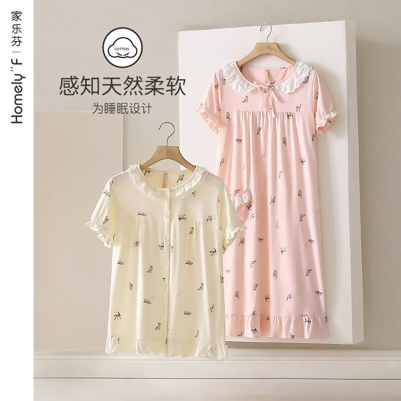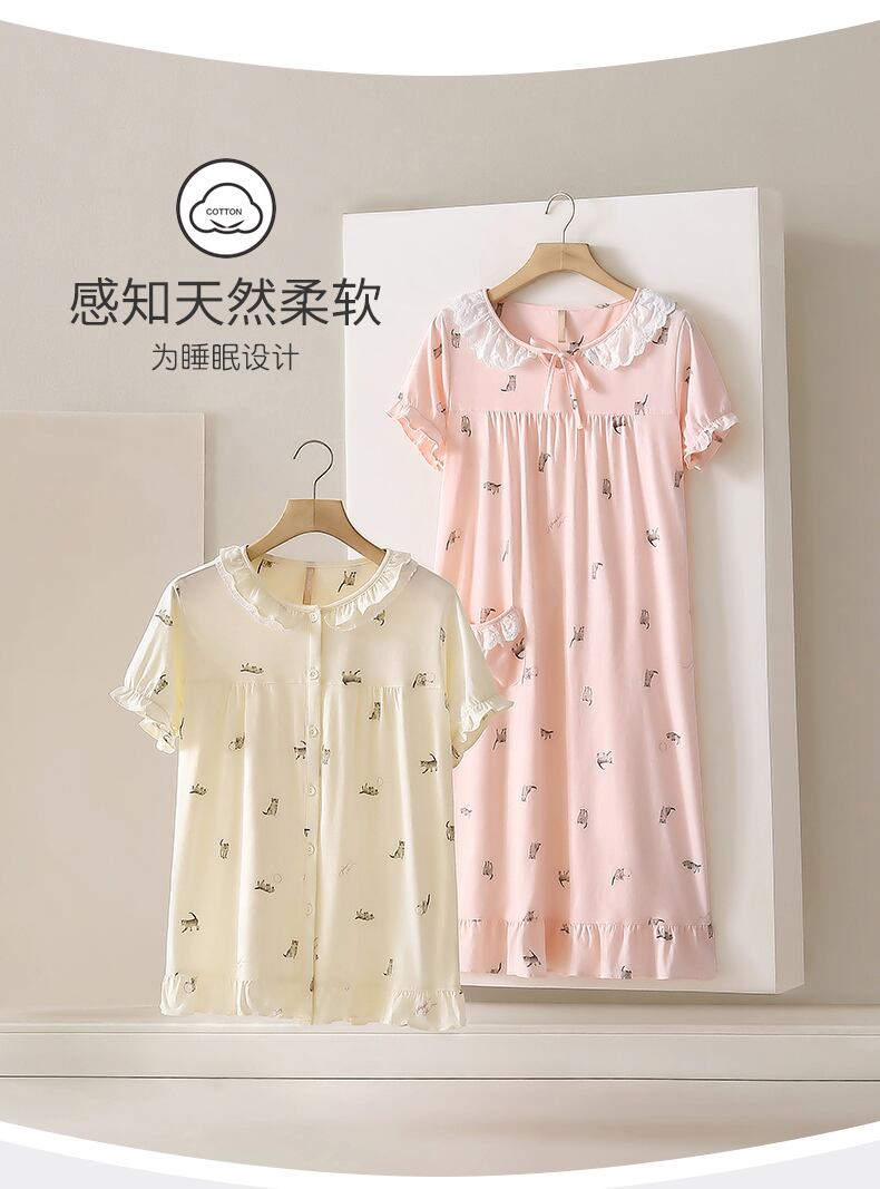 【やわらかい感じ】Carrefineネグリジェレディースパジャマサマーコットン半袖夏夏ロングドレスラージサイズ jial20527780416