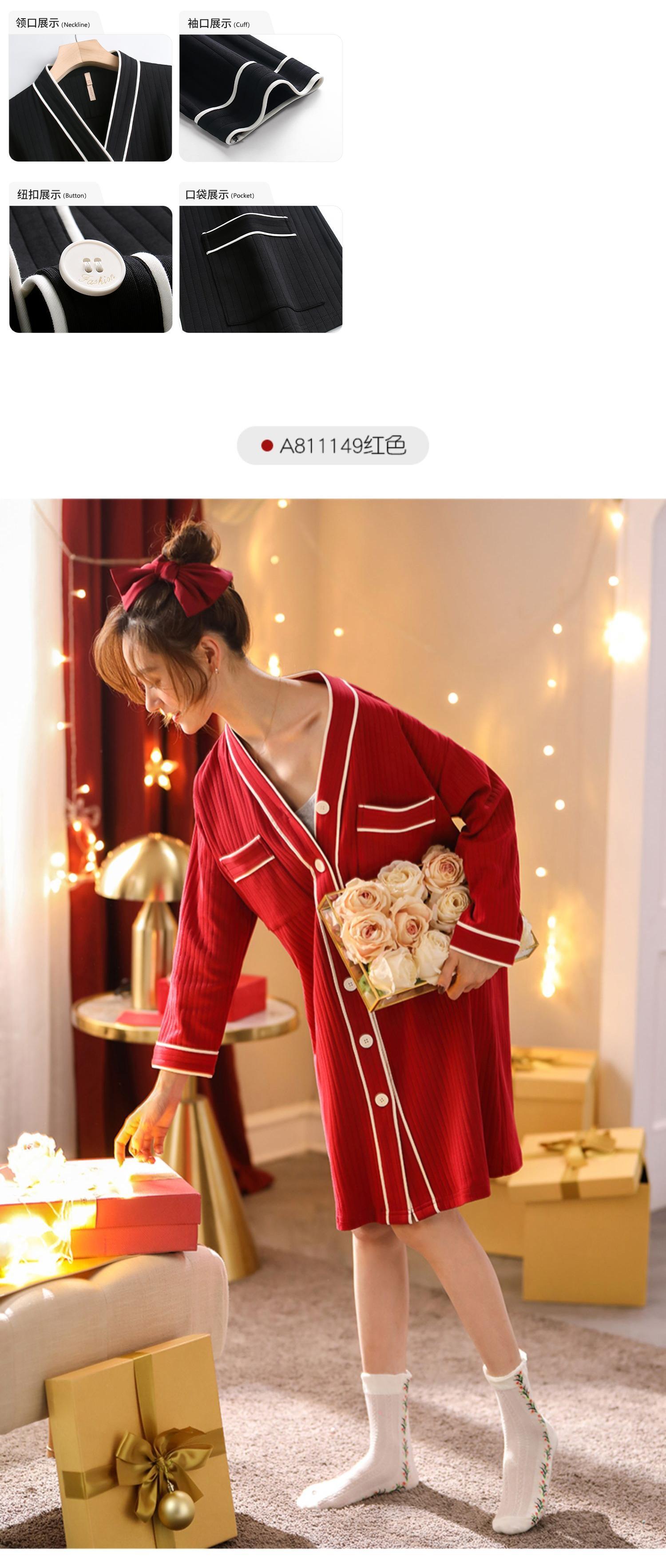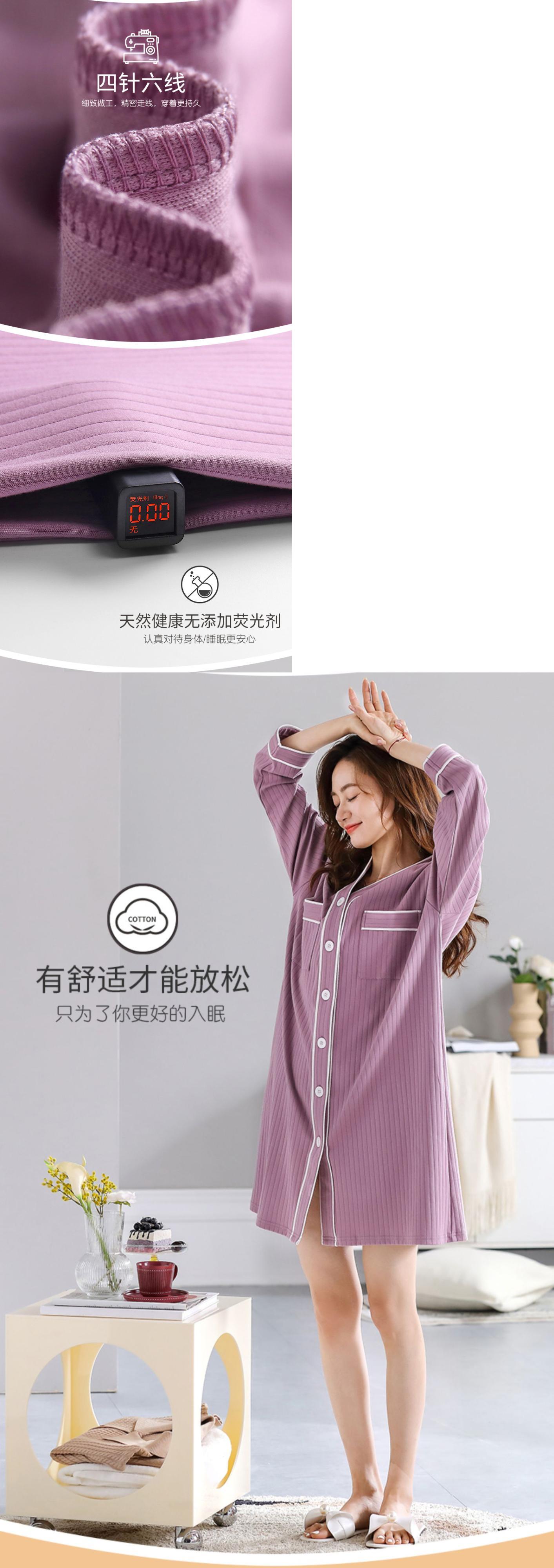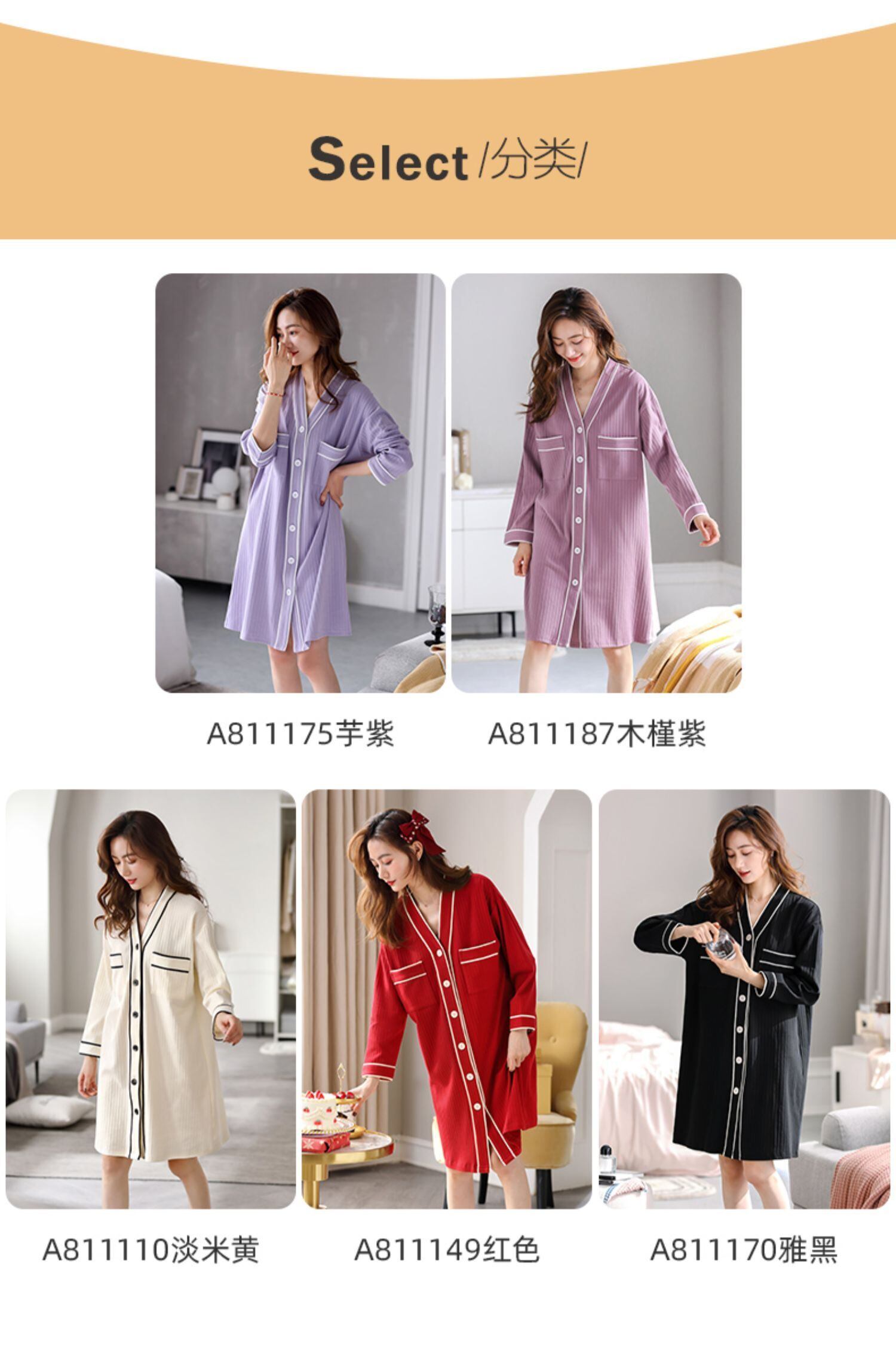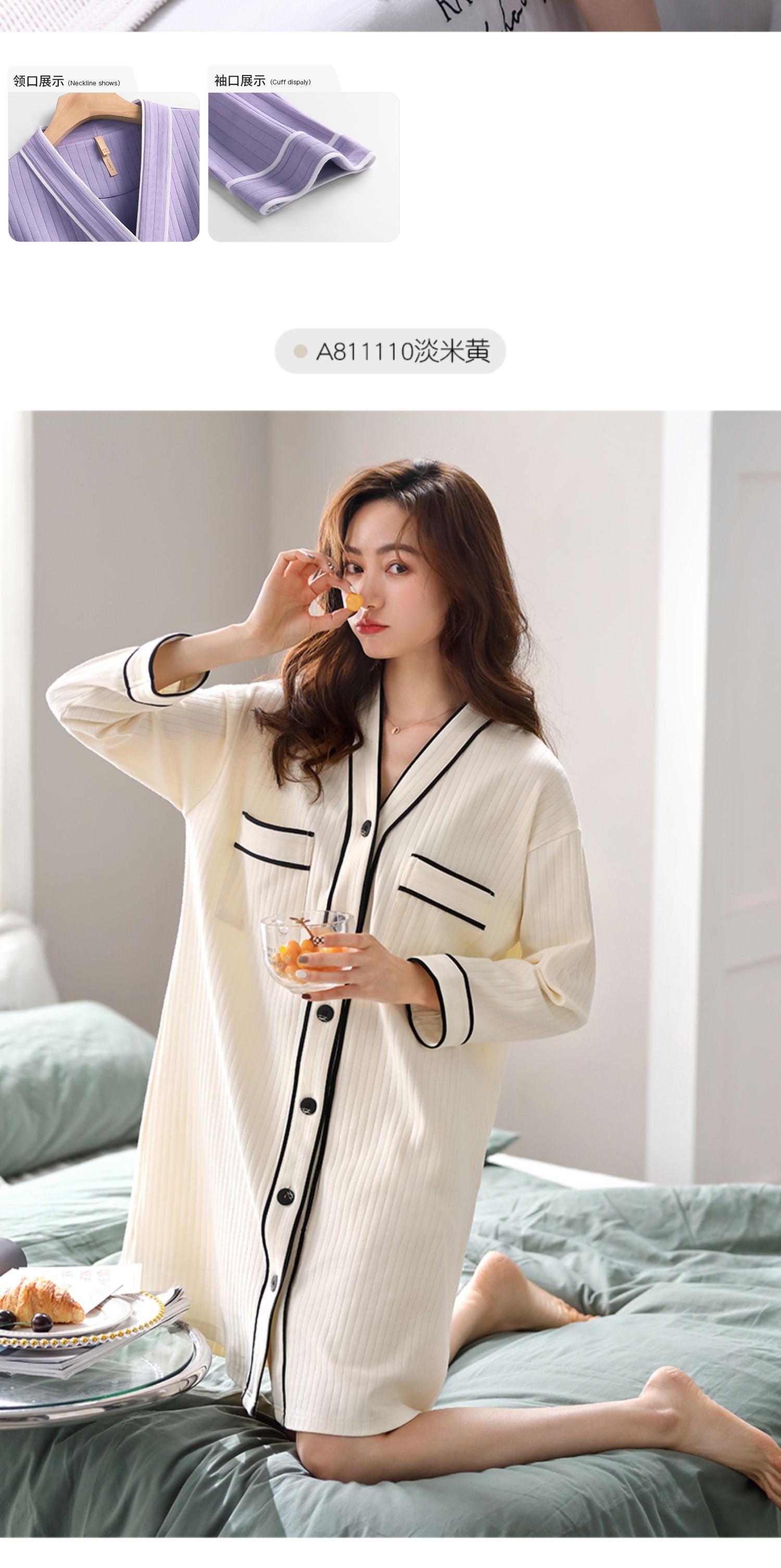 Carrefineネグリジェパジャマ春と秋秋長袖コットン薄片カーディガンロングシャツラージサイズ jial58666865204