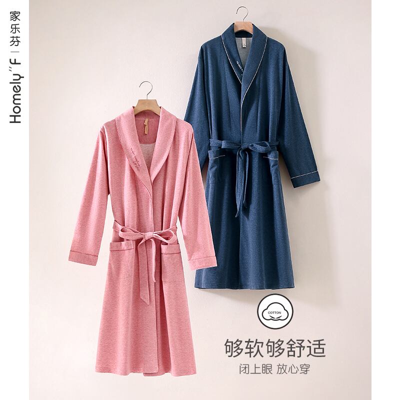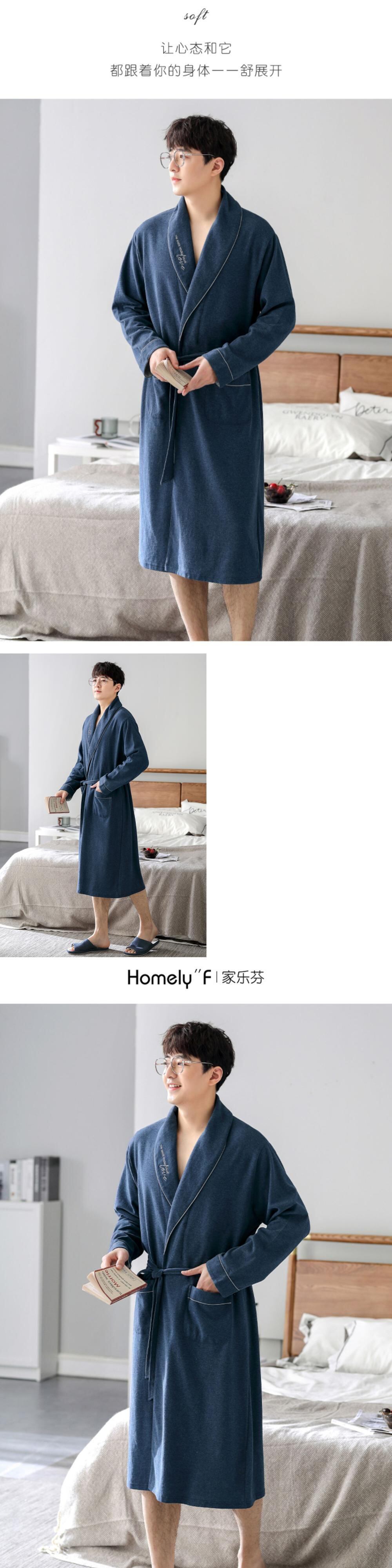 Jiarefen[カラーコットンブラッシュ]ナイトガウンメンズバスローブ春秋コットン長袖ロングフォーシーズンユニバーサルバスローブ jial15904802152