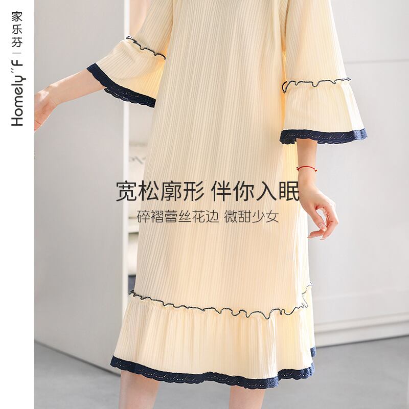 2022年新作ネグリジェレディースネグリジェ春秋純綿長袖七分袖プリンセススタイル大サイズ長夏 jial73531567879