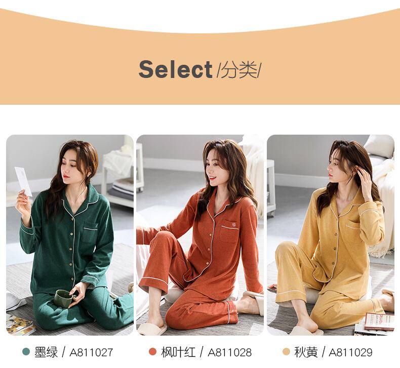 【カラーコットンブラッシュ】Carrefineパジャマレディース春秋秋ピュアコットン長袖家庭用品春スーツ jial35873897373