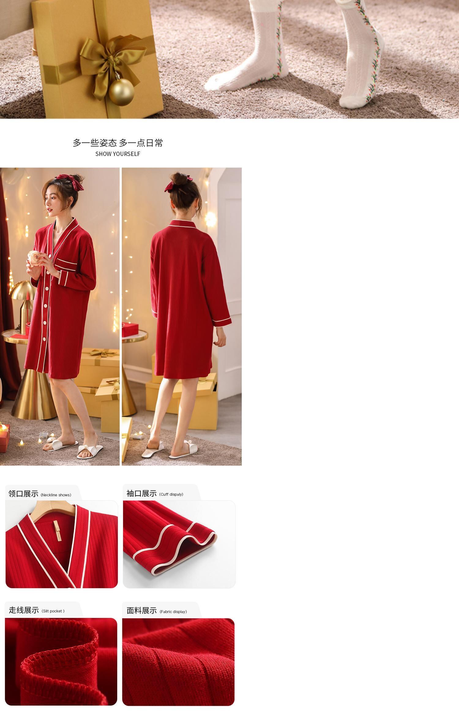 Carrefineナイトドレスパジャマドレス春と秋ピュアコットン春と夏ラージサイズシャツカーディガンシャツロングクオリティセンス jial10144551621