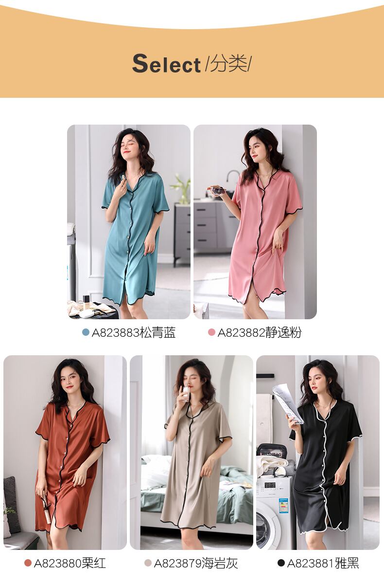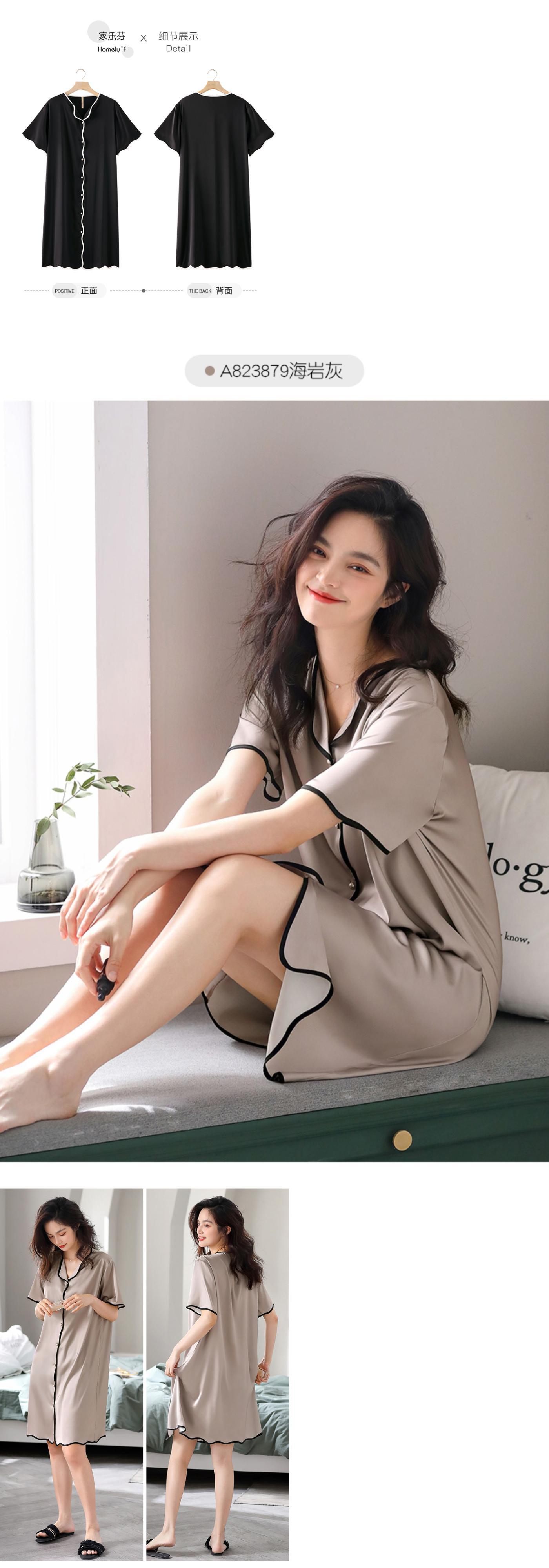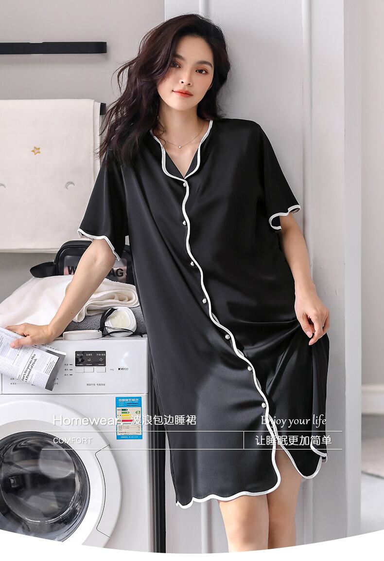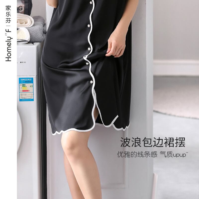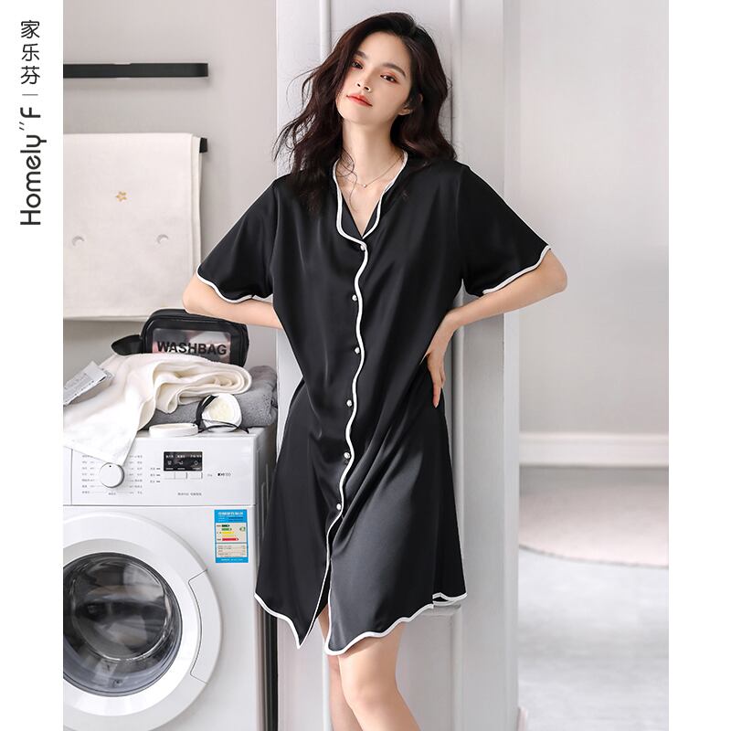 Carrefineパジャマナイトドレス夏夏シルクアイスシルク半袖ロングシミュレーションシルクシャツカーディガンラージサイズ jial5014804947