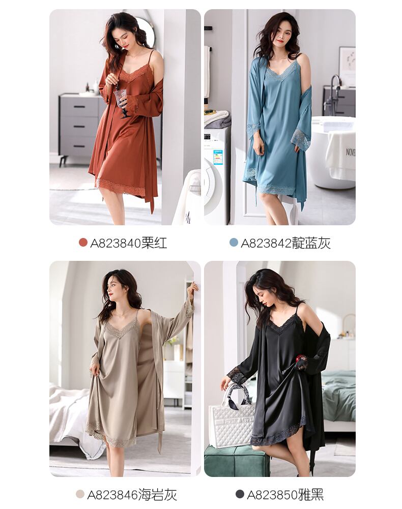 パジャマレディースナイトガウンバスローブ春と秋のシルクアイスシルク春と夏のシミュレーションシルクサスペンダーナイトドレスセクシーなツーピーススーツ jial50889588094