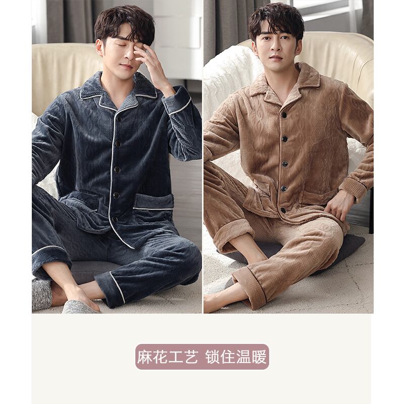 パジャマメンズウィンターフランネルシックニングとベルベットコーラルフリースホームウェアメンズラージサイズ秋冬スーツ jial58528828108