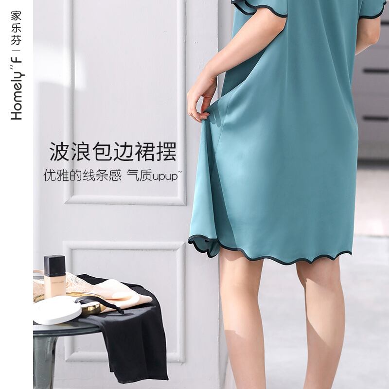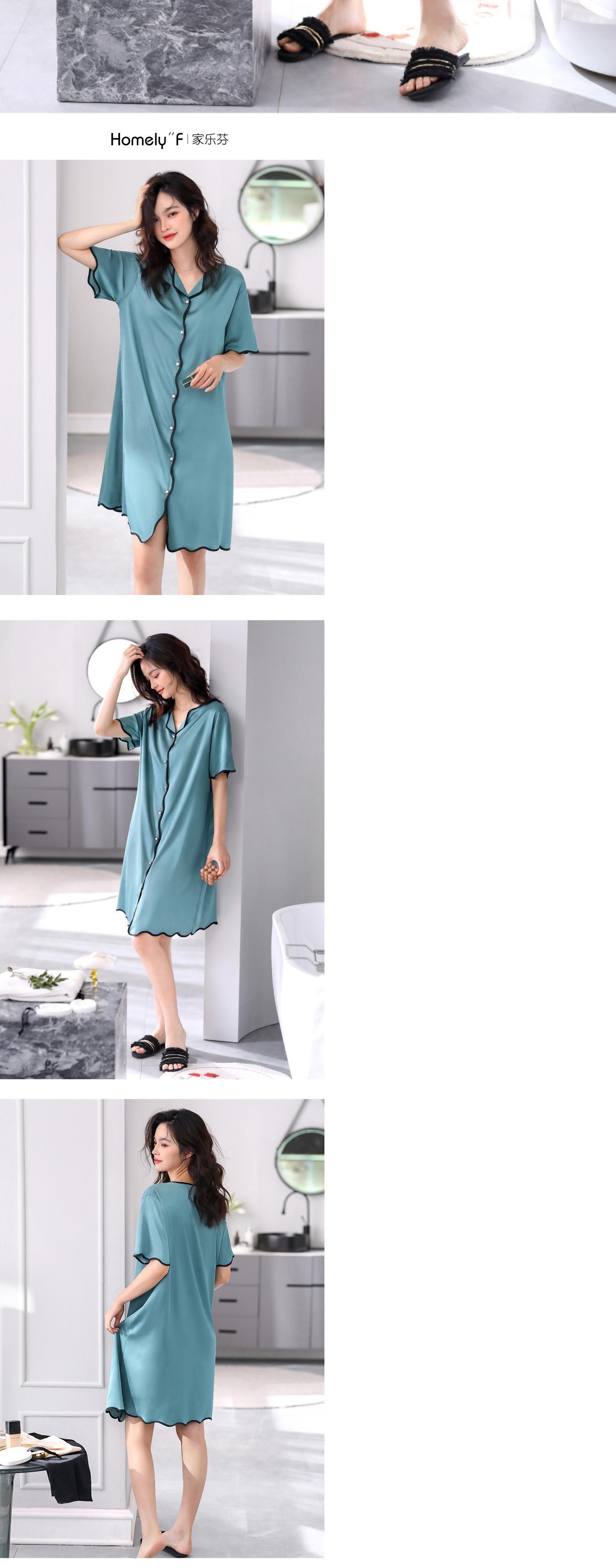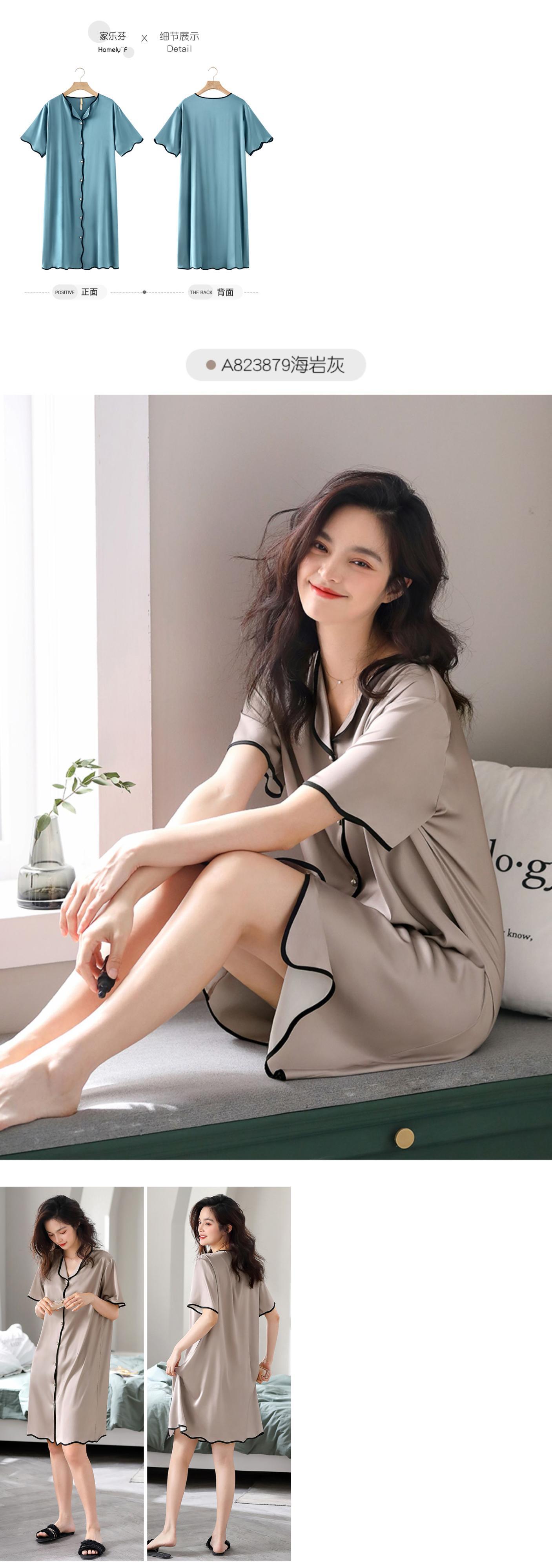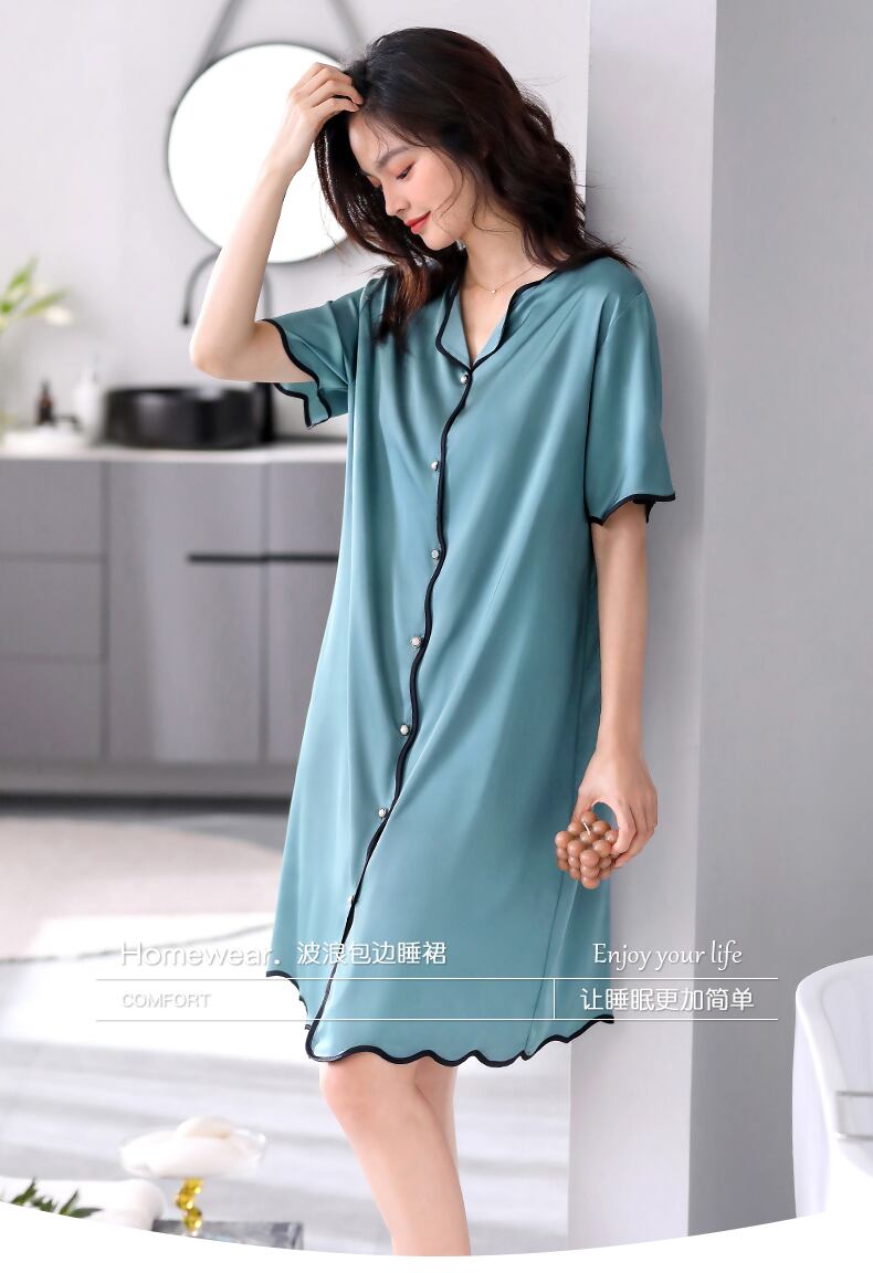 Carrefineパジャマナイトドレス夏夏シルクアイスシルク半袖ロングシミュレーションシルクシャツカーディガンラージサイズ jial48848674949