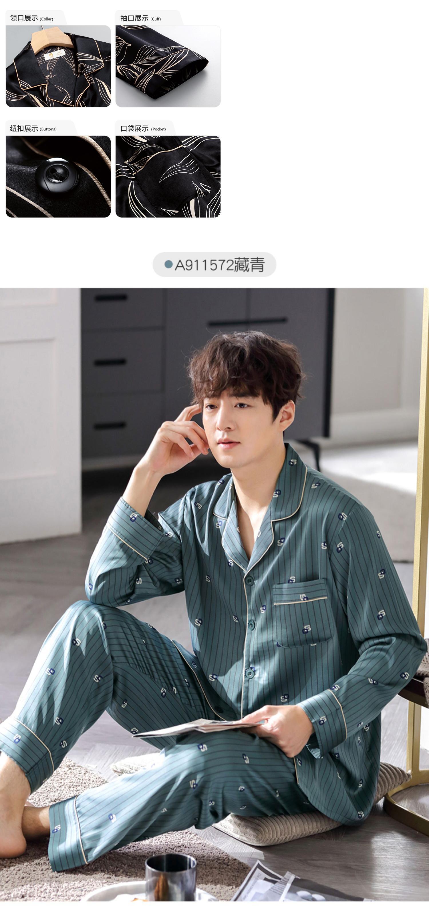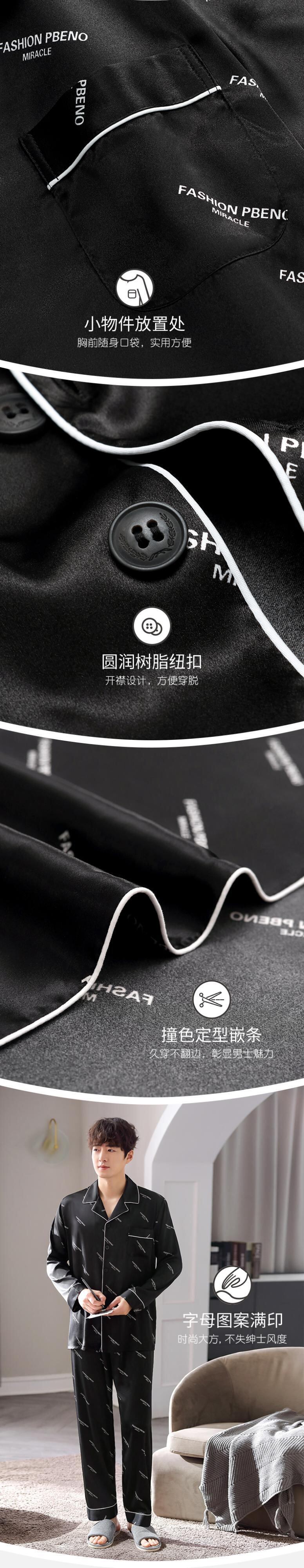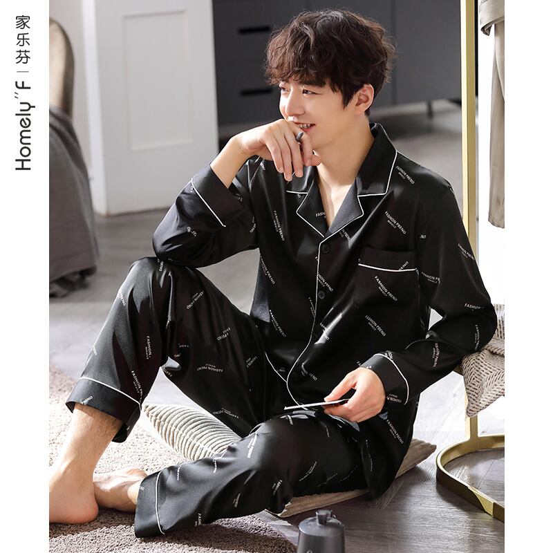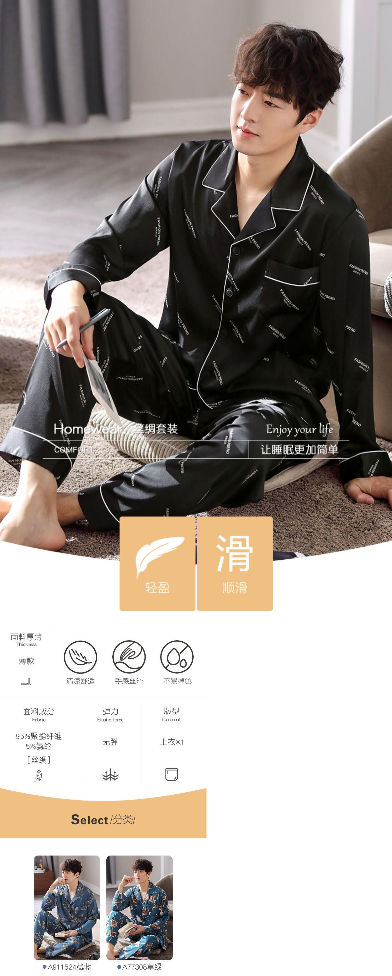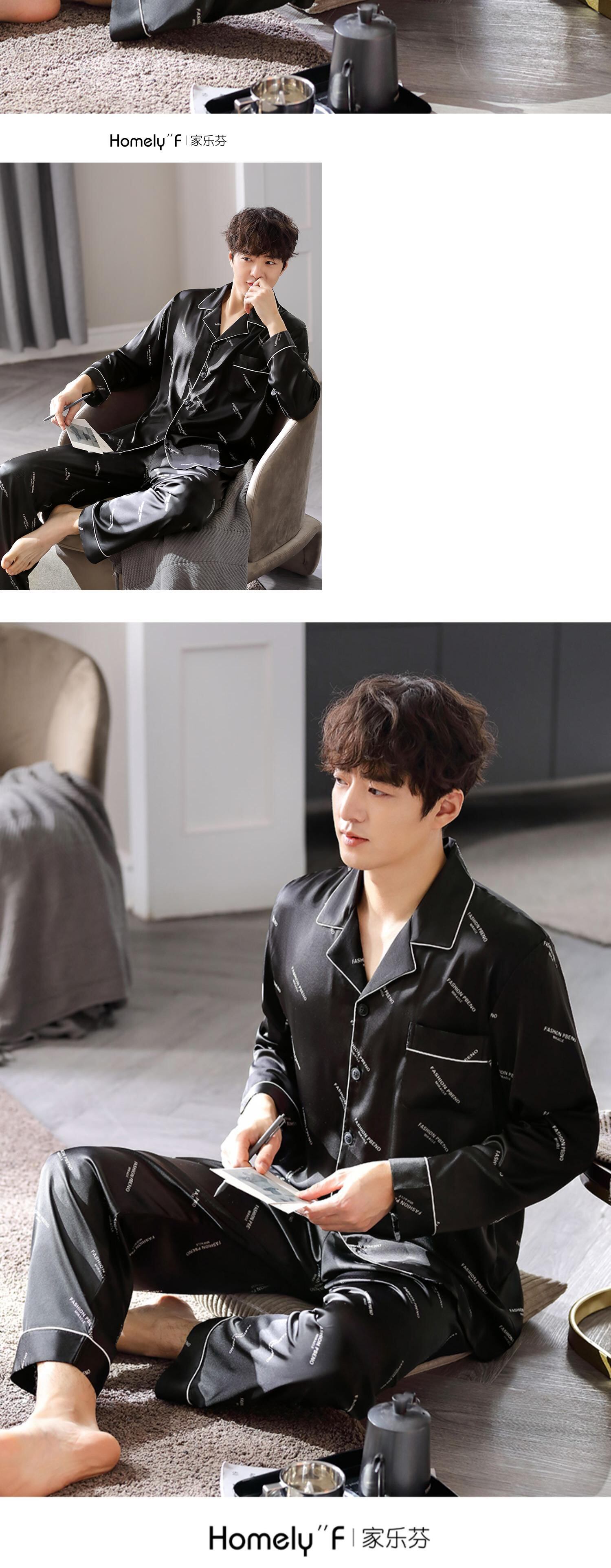 【涼しさ】パジャマメンズ春秋シルクアイスシルク長袖家庭服メンズシミュレーションシルク四季スーツ jial64579035225