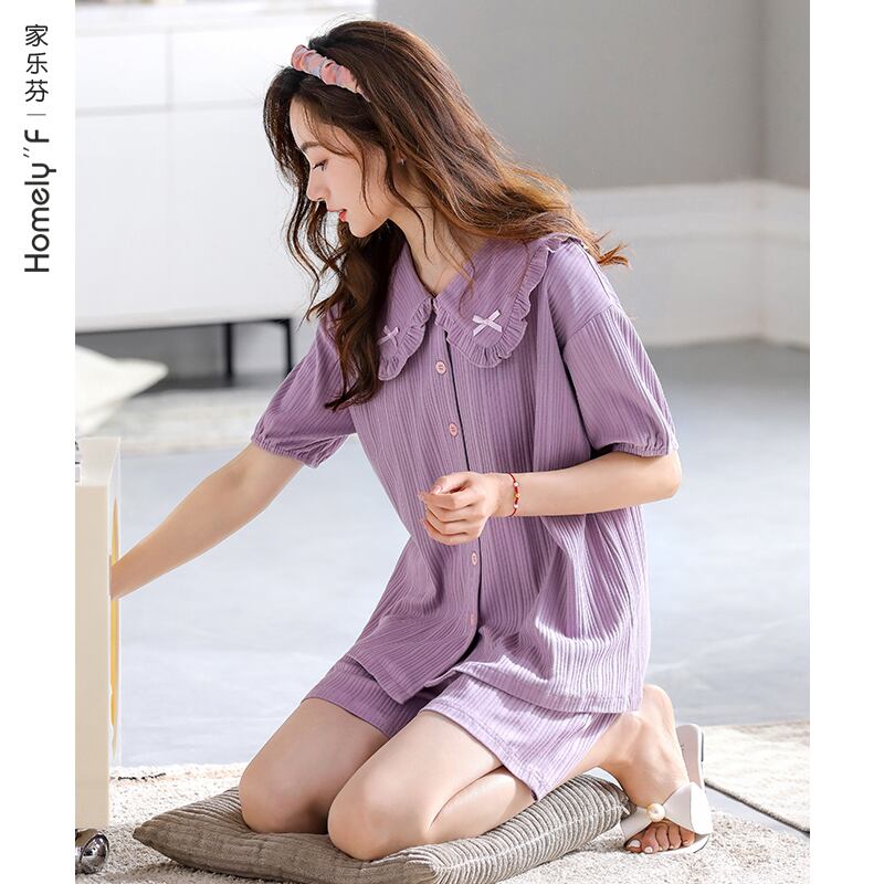 Carrefineパジャマサマーコットン半袖ショーツカーディガンホームウェア夏夏ラージサイズかわいいスーツ jial85255566423