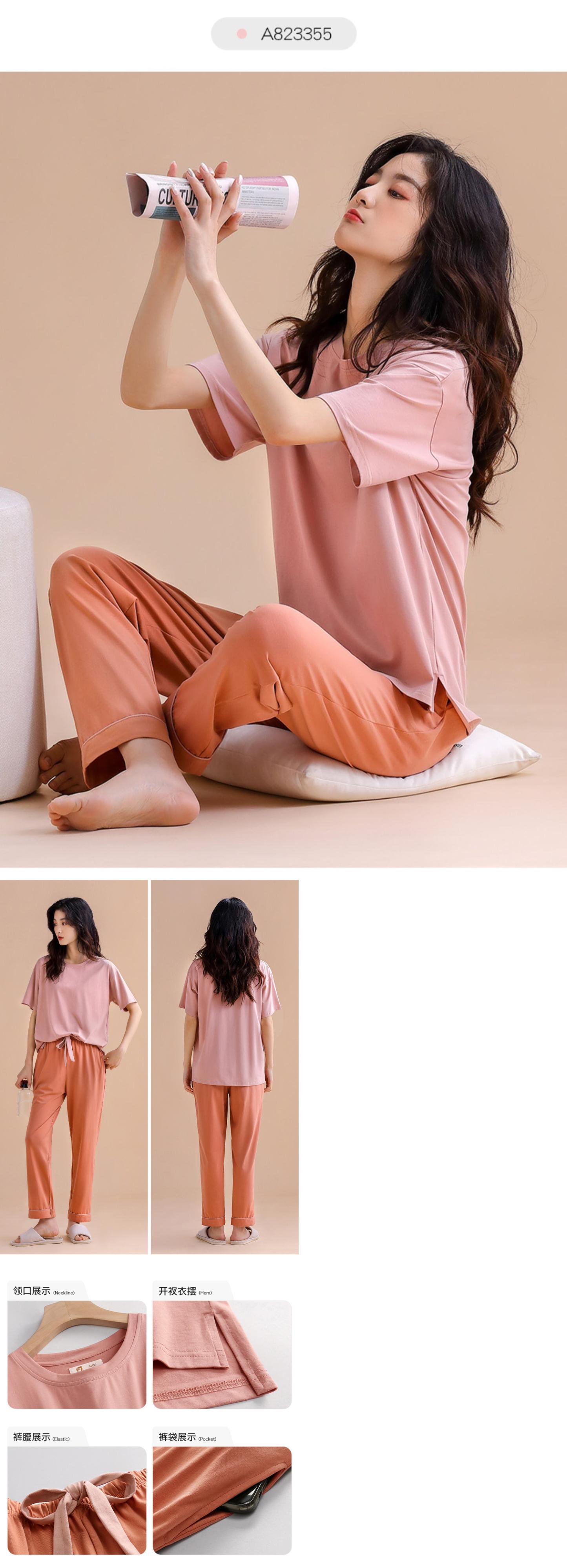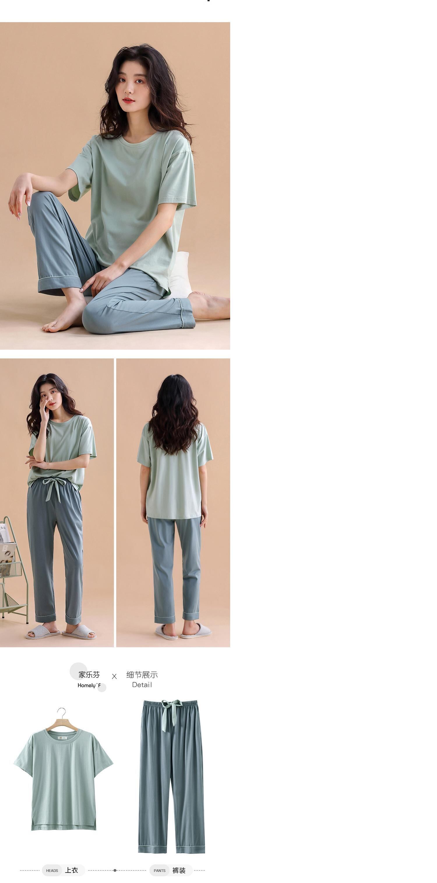 【ライクラコットン】Carrefineパジャマレディースサマーピュアコットン半袖パンツ家庭服夏夏モデルは屋外で着用可能 jial567245417