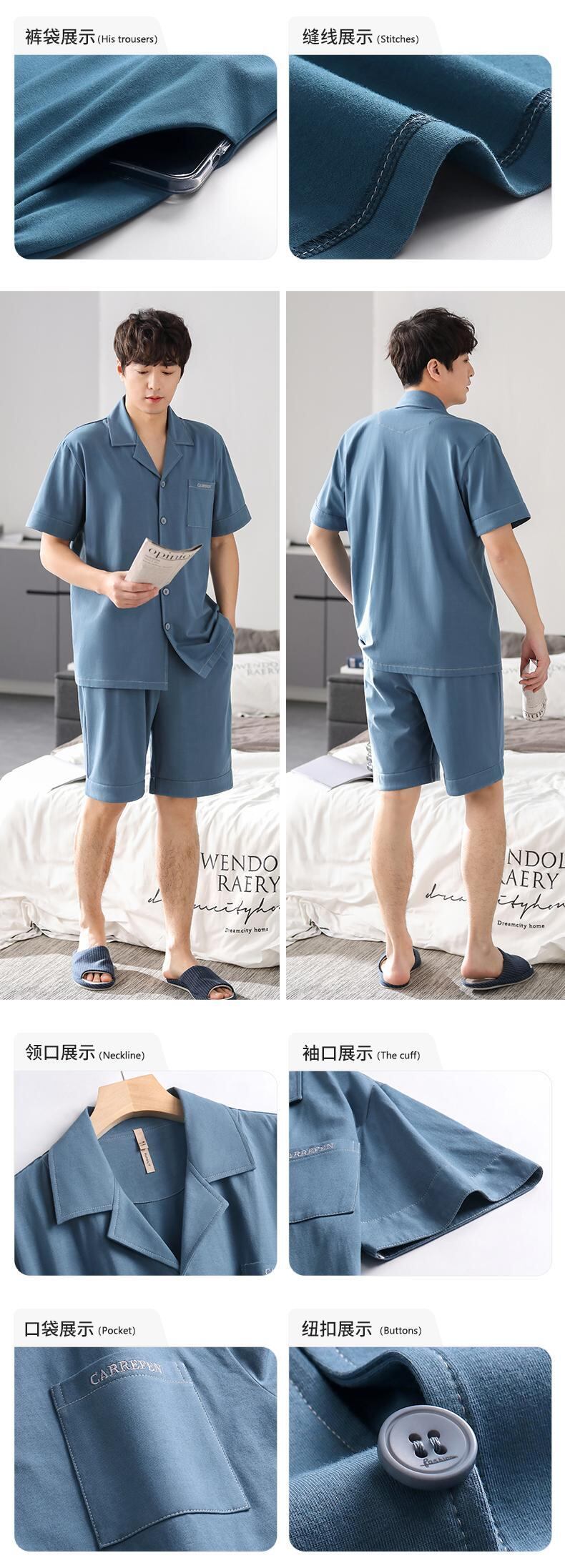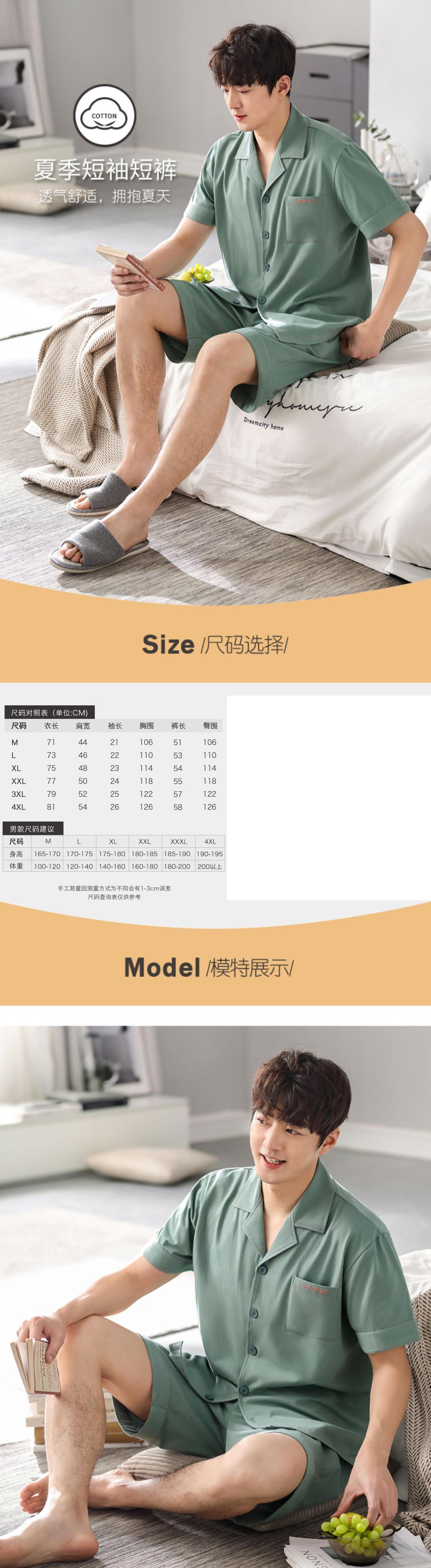 Carrefineパジャマメンズサマーコットン半袖ショーツホームサービスメンズサマーサマーコットンシンスーツ jial90695032821