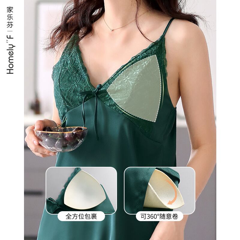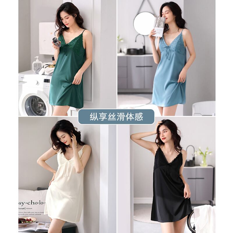 胸パッドサスペンダー付きナイトドレスレディースパジャマ夏夏シルクアイスシルクベストシミュレーションシルク薄いセクシーなドレス jial9930478905