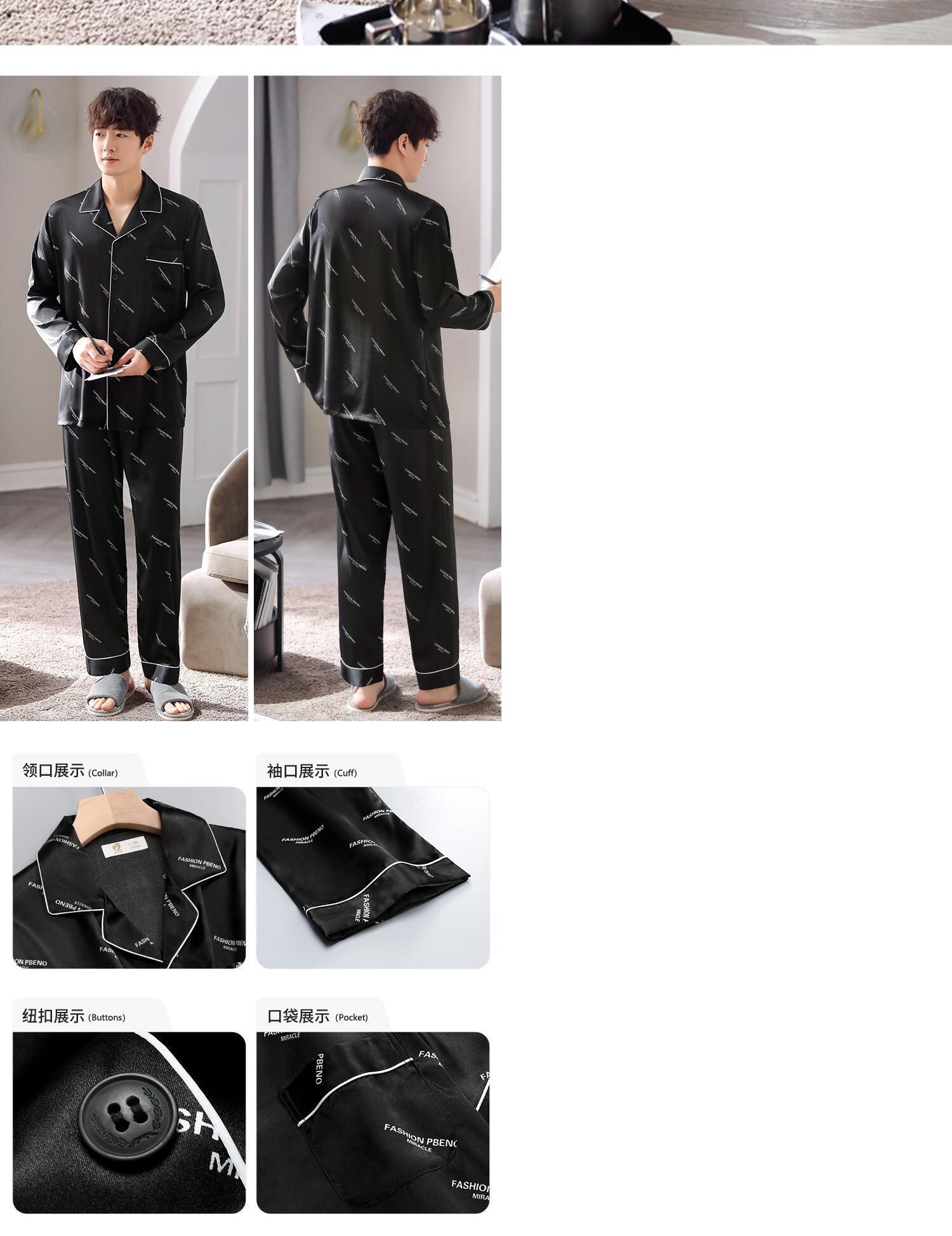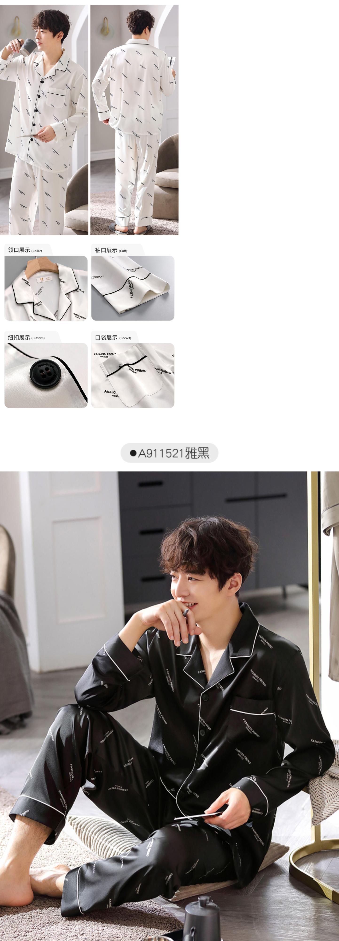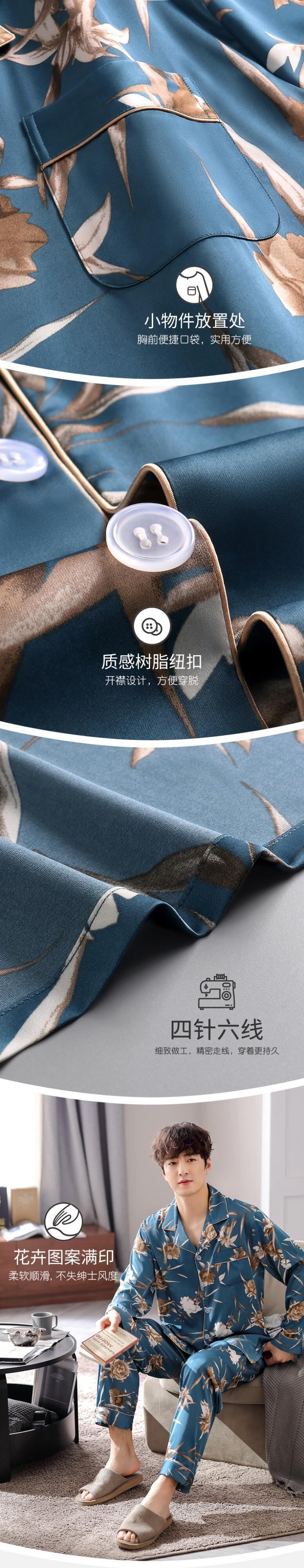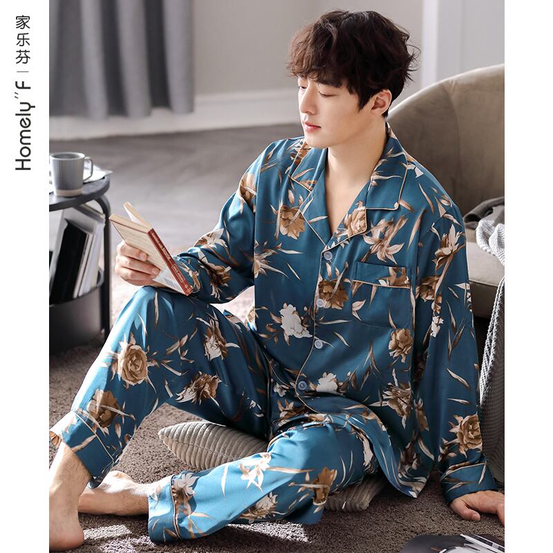 【涼しさ】パジャマメンズ春秋シルクアイスシルク長袖家庭服メンズシミュレーションシルク四季スーツ jial12084309619