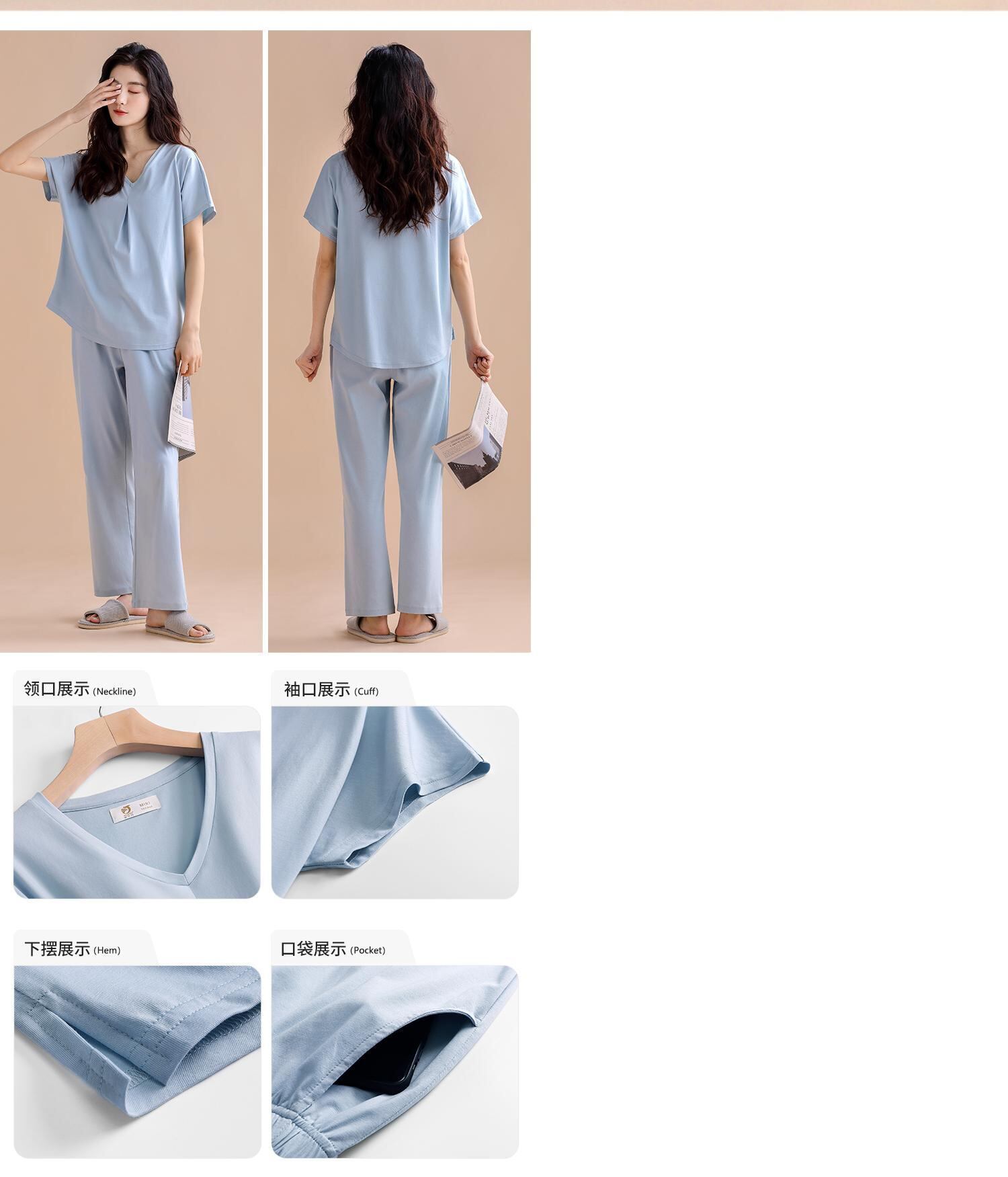 色:A823240麦畑色[ラウンドネック/ナインパンツ],A823239ライトブルー[Vネック/パンツ],1,2