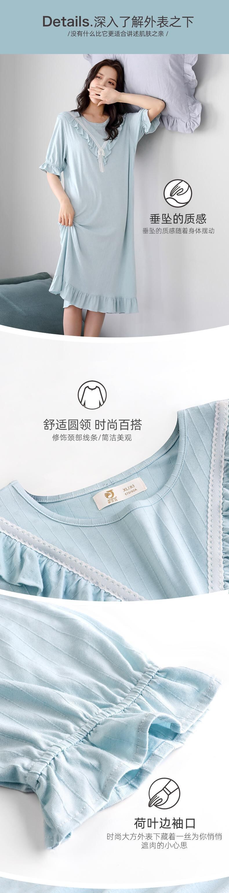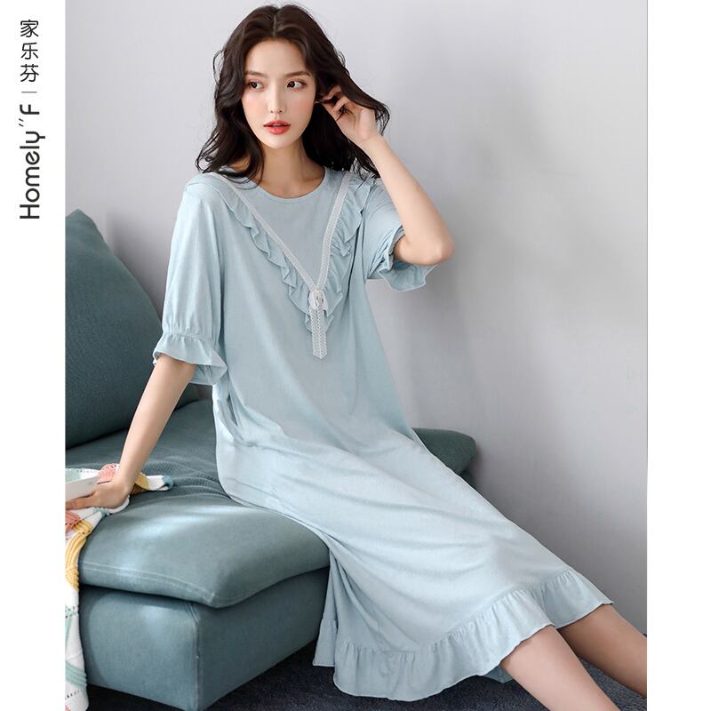 ネグリジェレディースパジャマ夏夏半袖モーダルコットンシルク薄片甘くてかわいいeseプリンセススタイルロングセクション jial18014547277
