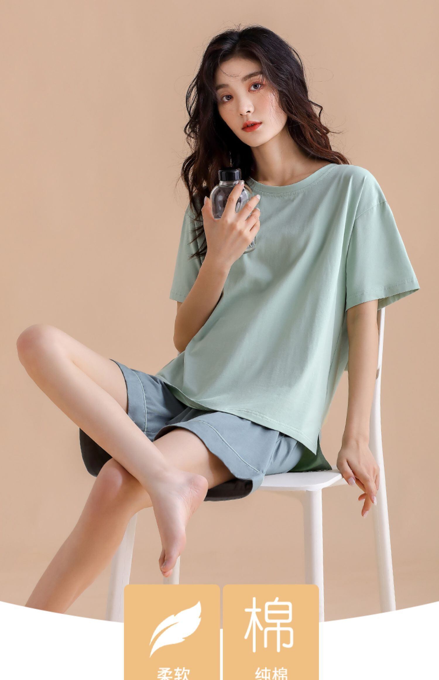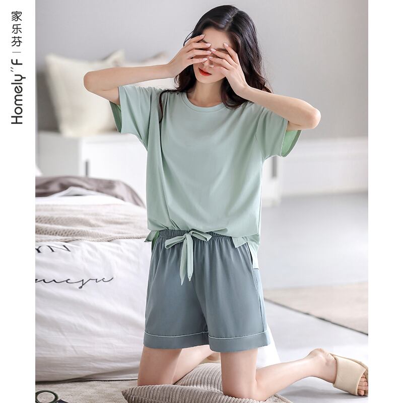 【ライクラコットン】Carrefineパジャマレディースサマーコットン半袖ショーツ家庭服夏夏モデルは屋外で着用可能 jial42590923680