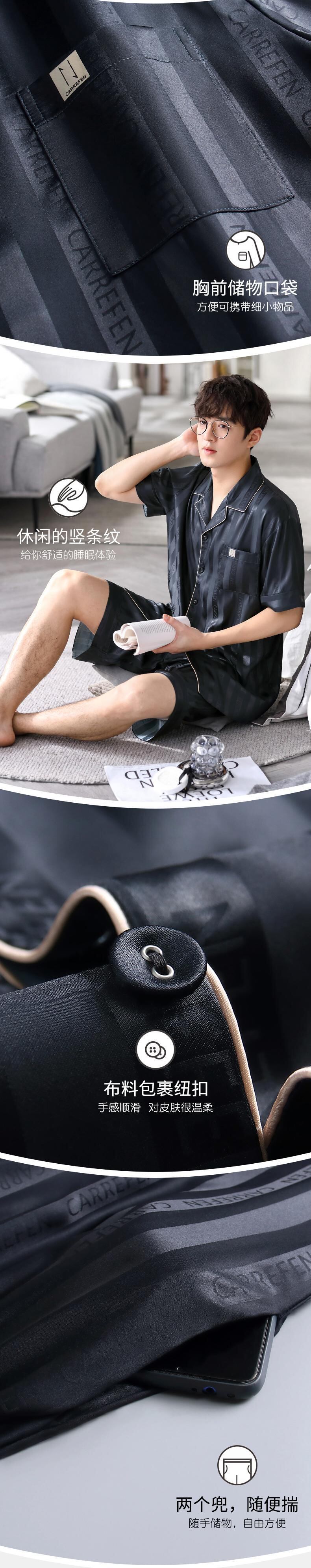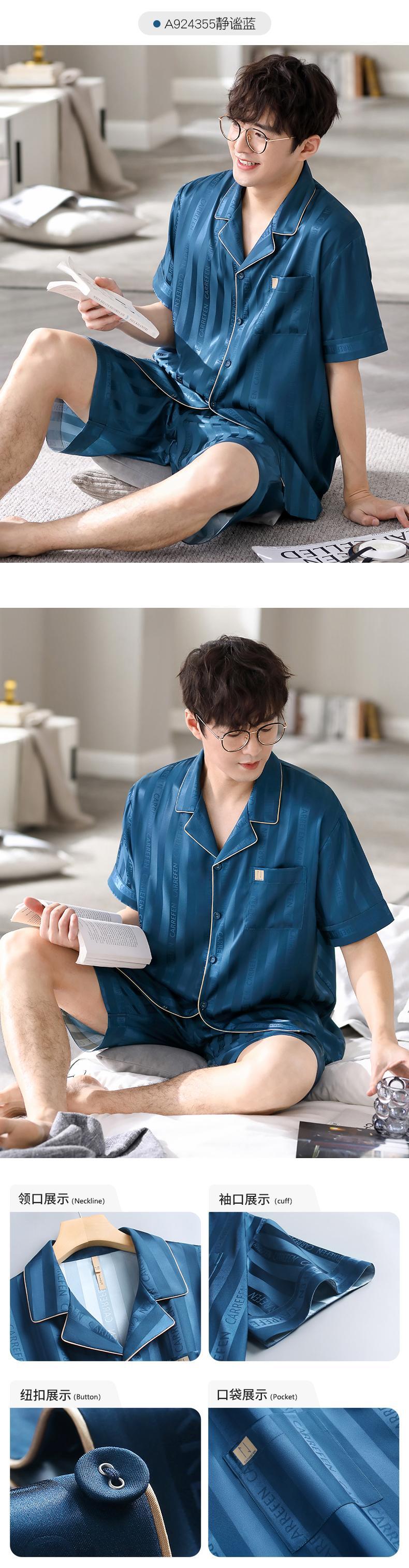 Carrefineパジャマメンズサマーシルクアイスシルク半袖ショーツシミュレーションシルク家庭服メンズサマーサマーモデル jial65979292760