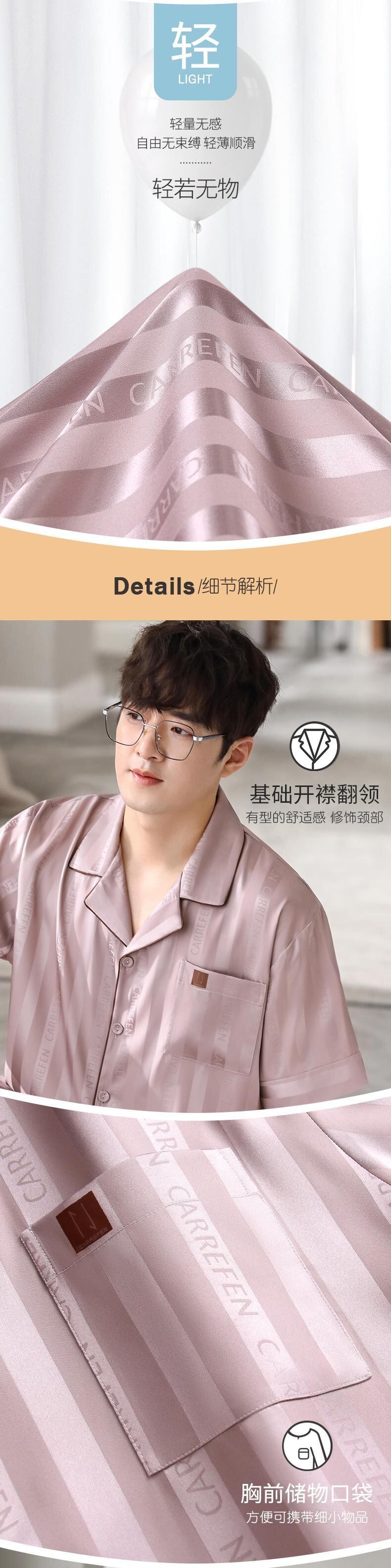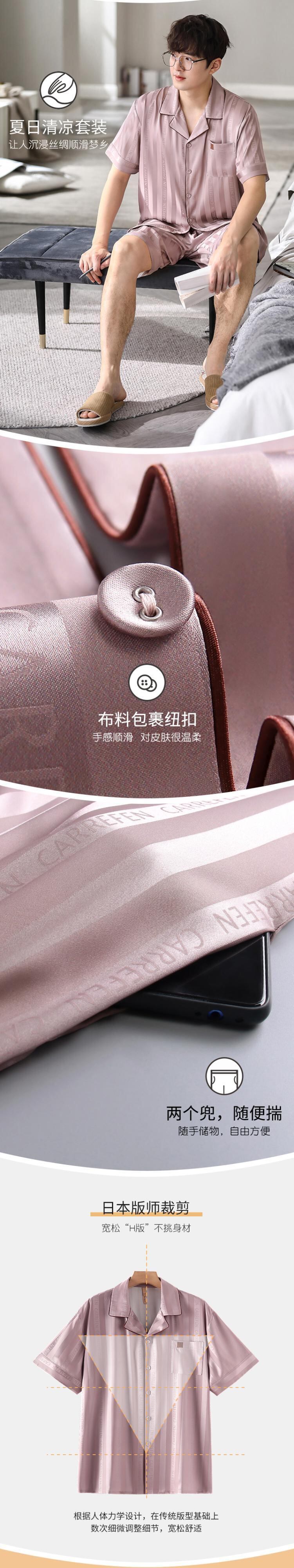 Carrefineパジャマメンズサマーシルクアイスシルク半袖ショーツシミュレーションシルク家庭服メンズサマーサマーモデル jial17856366234