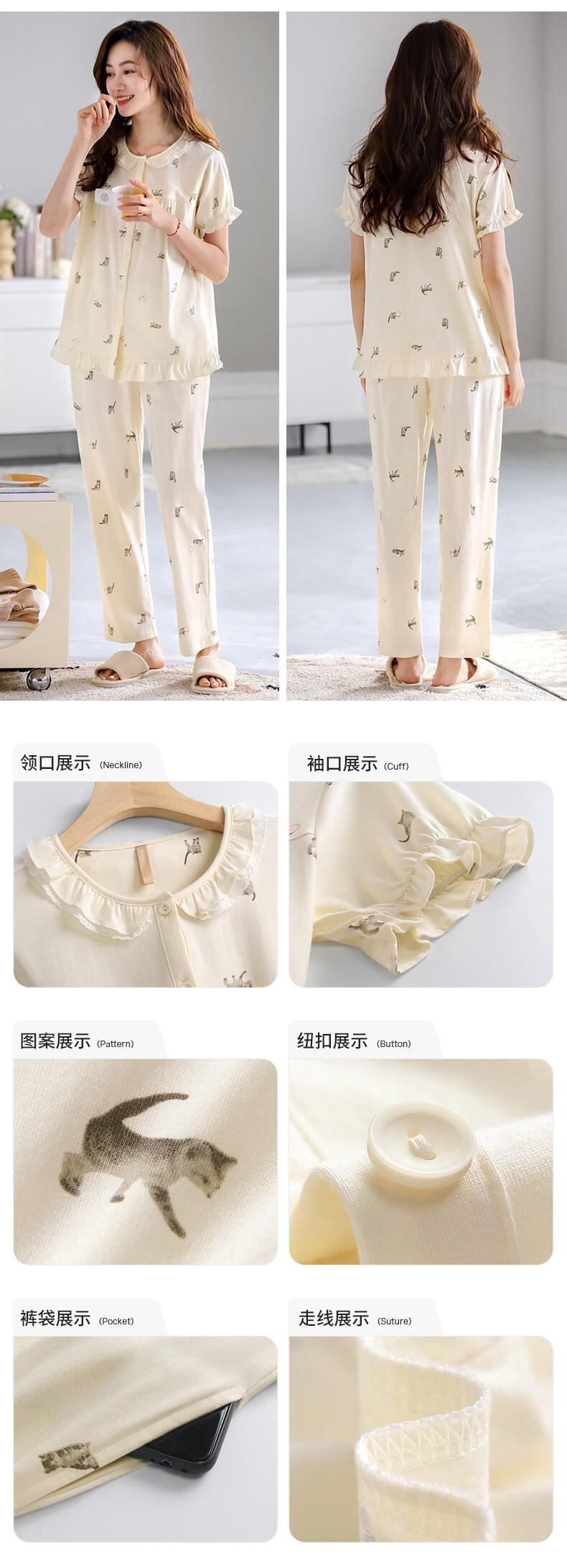 【やわらかい感じ】Jiarefenパジャマレディースサマーコットン半袖パンツ大型家庭服夏夏スーツ jial48919003173