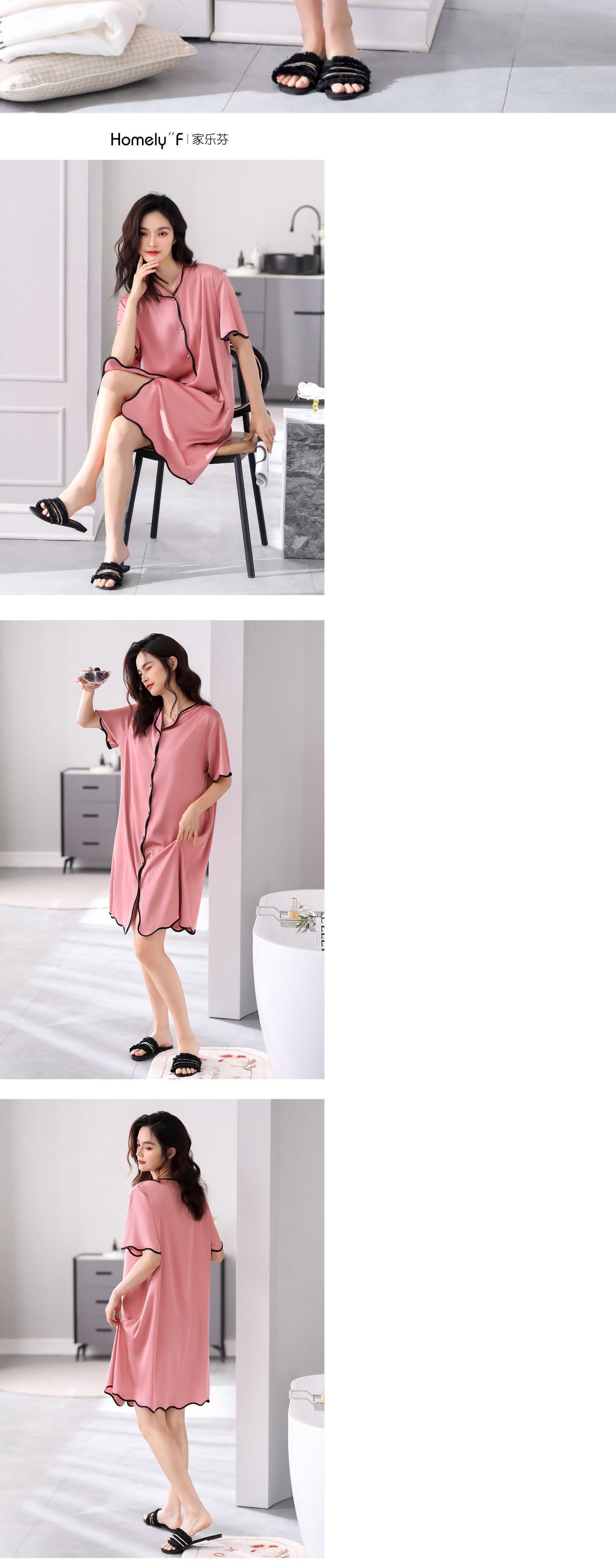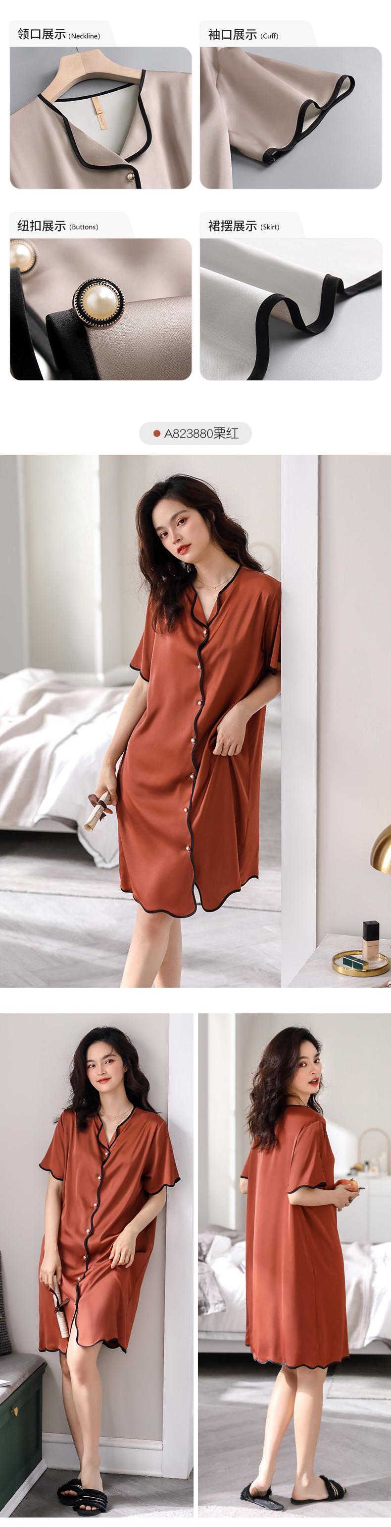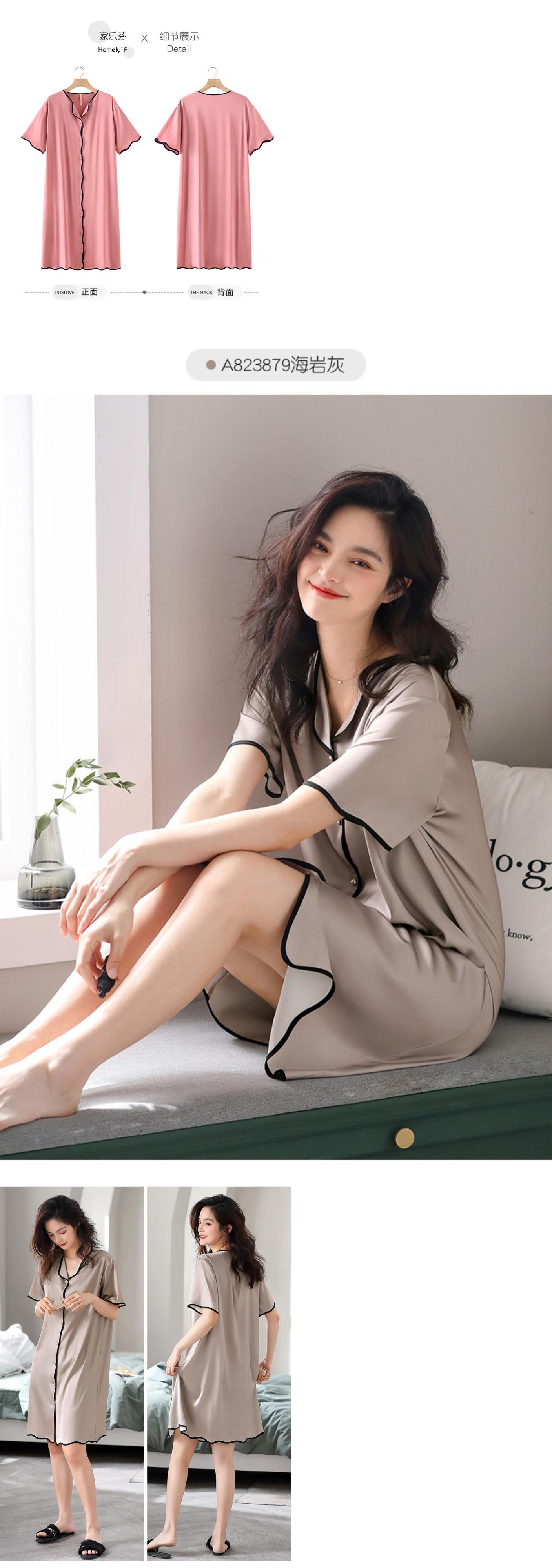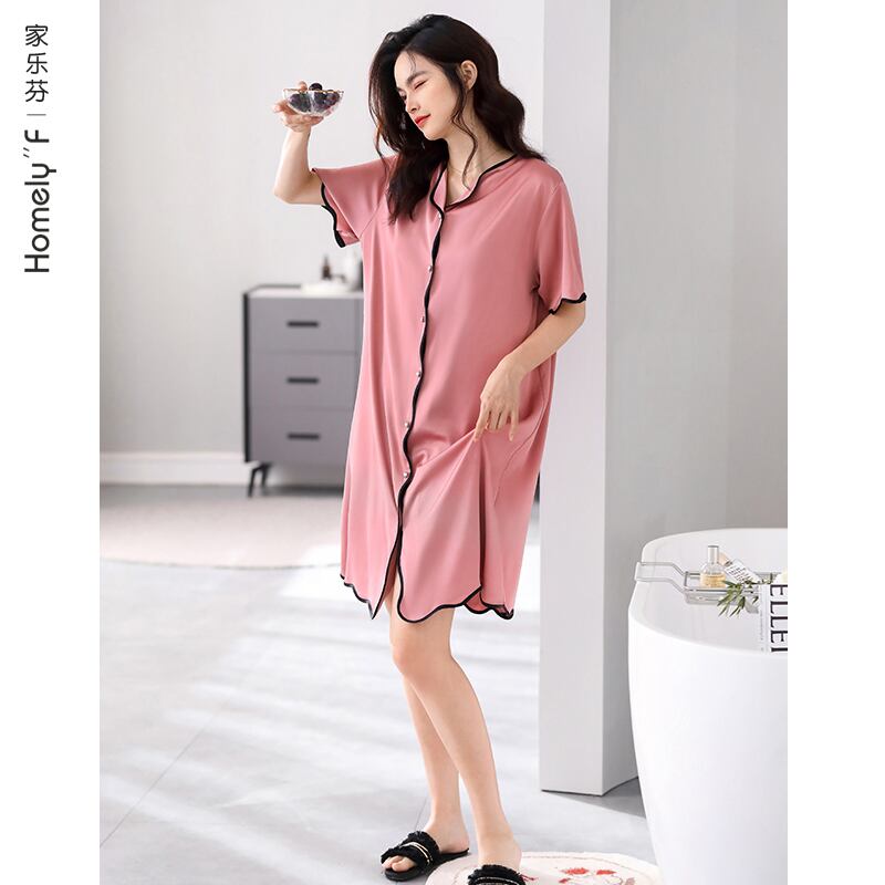 Carrefineパジャマナイトドレス夏夏シルクアイスシルク半袖ロングシミュレーションシルクシャツカーディガンラージサイズ jial62313989207