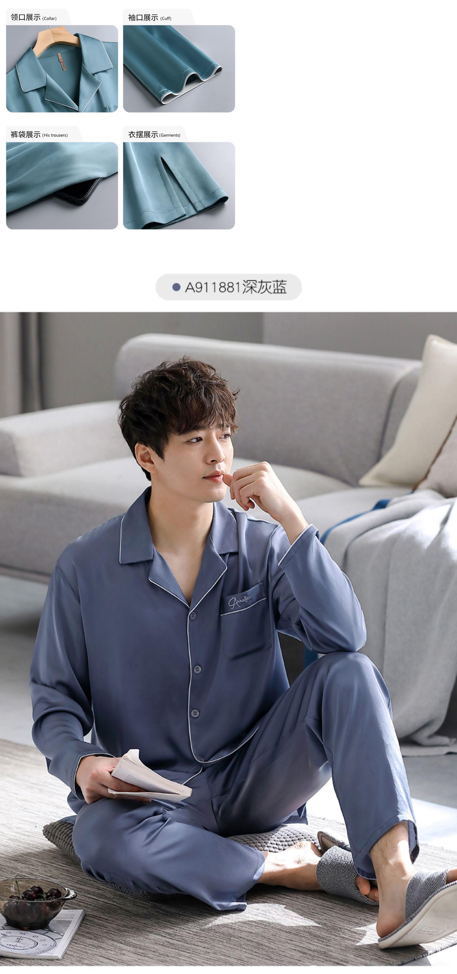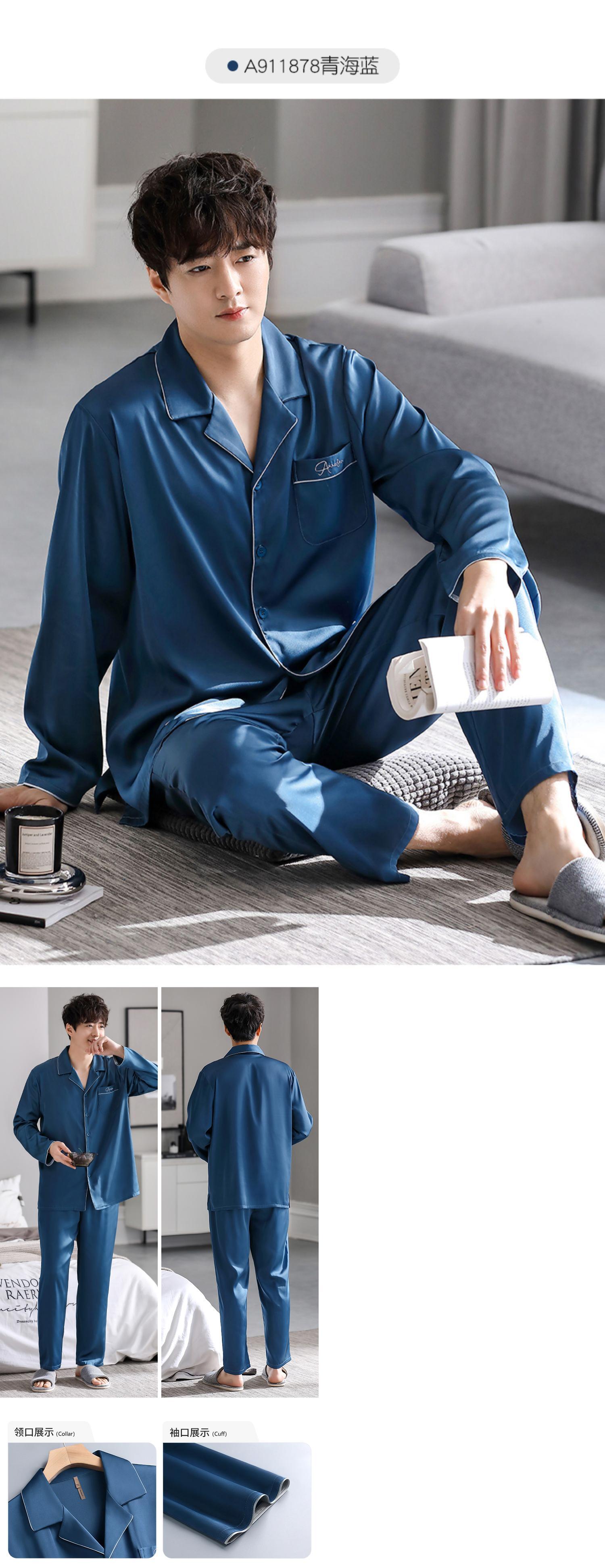 パジャマメンズ春秋シルクアイスシルク長袖ホームウェアメンズシミュレーションシルク春四季夏夏 jial32461308741