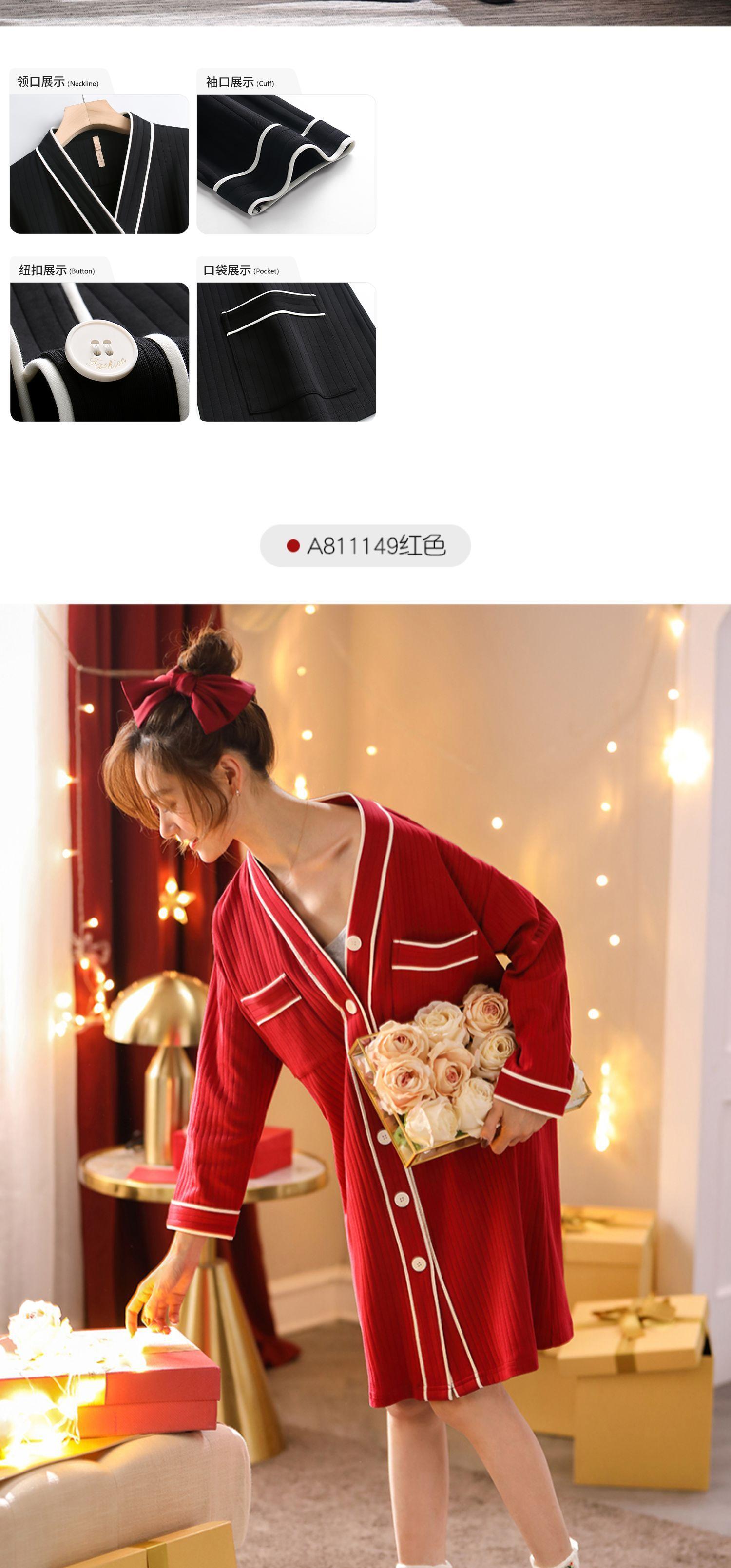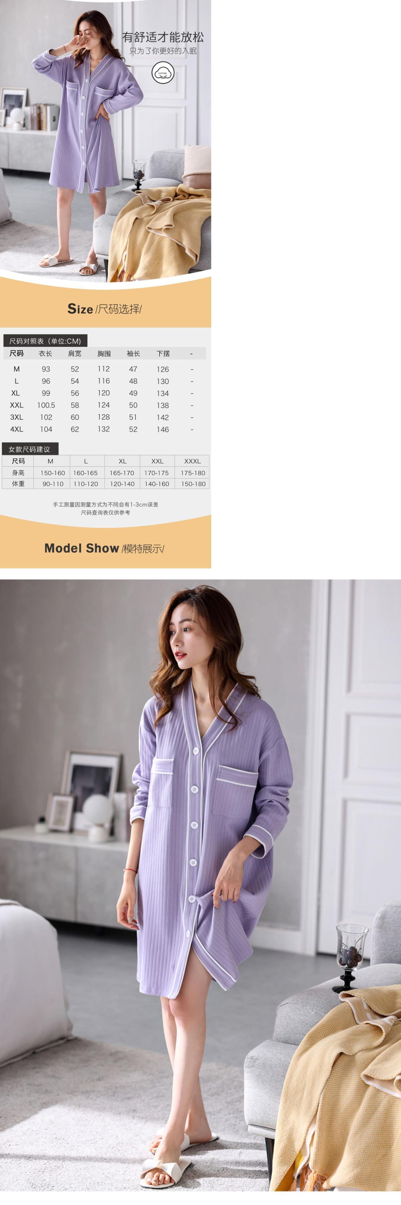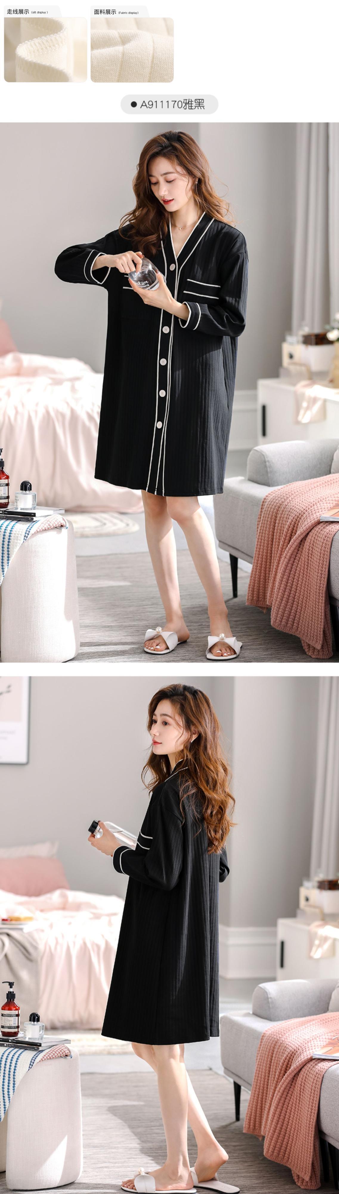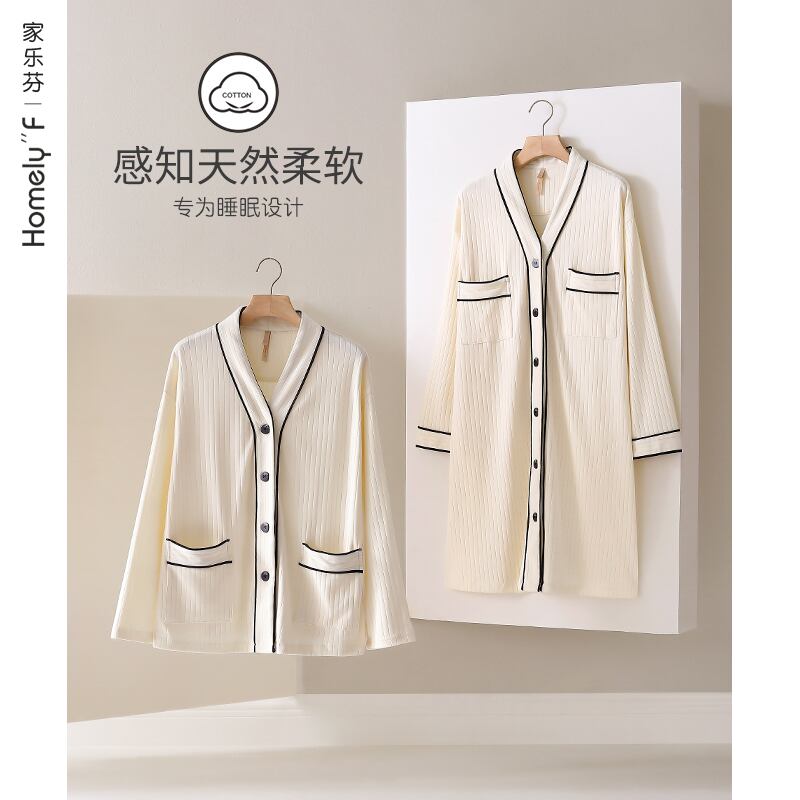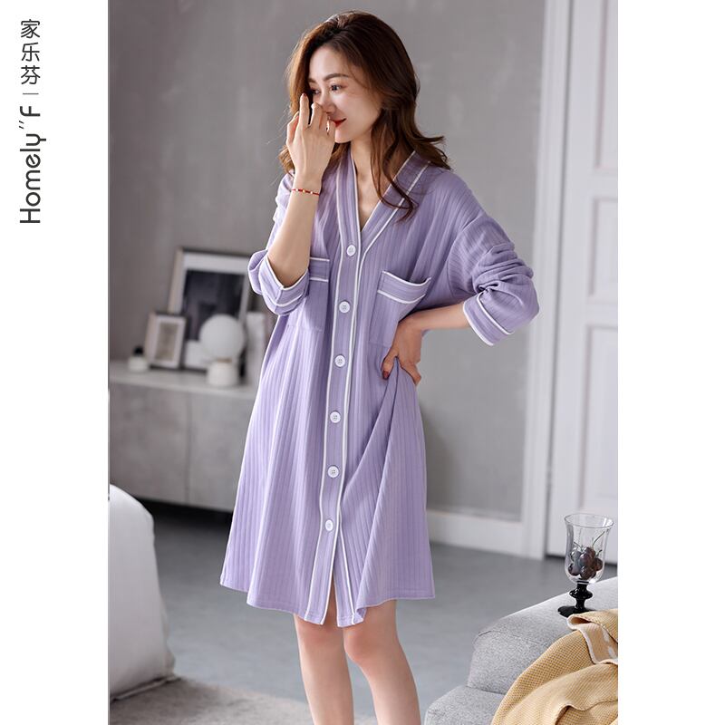 Carrefineネグリジェパジャマ春と秋秋長袖コットン薄片カーディガンロングシャツラージサイズ jial71964900367