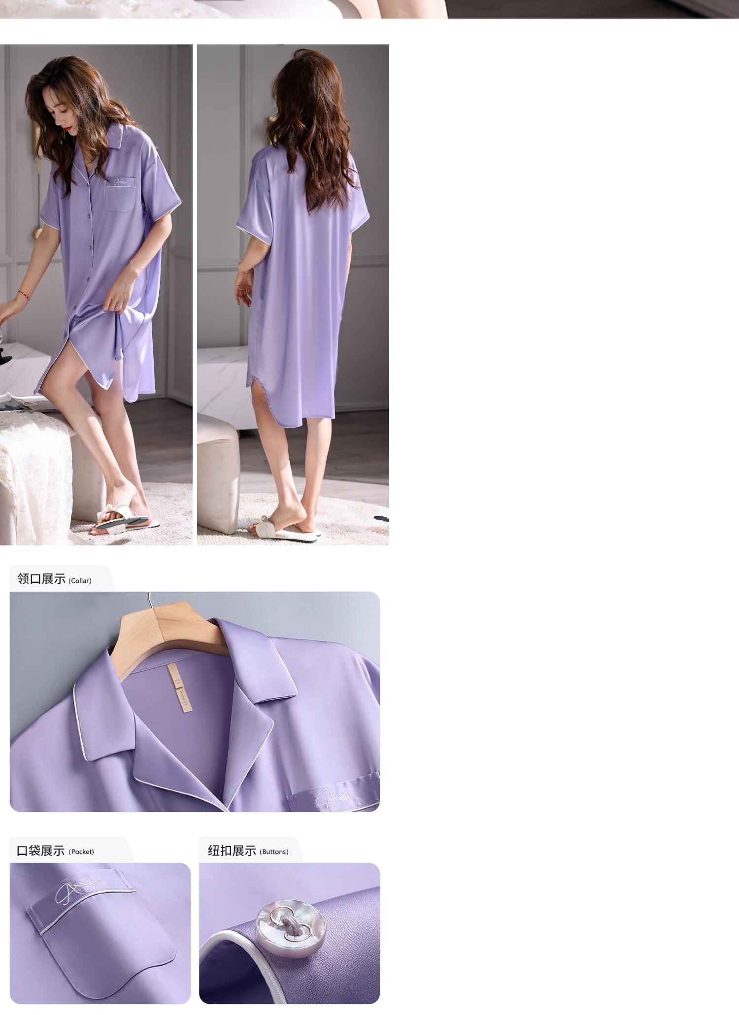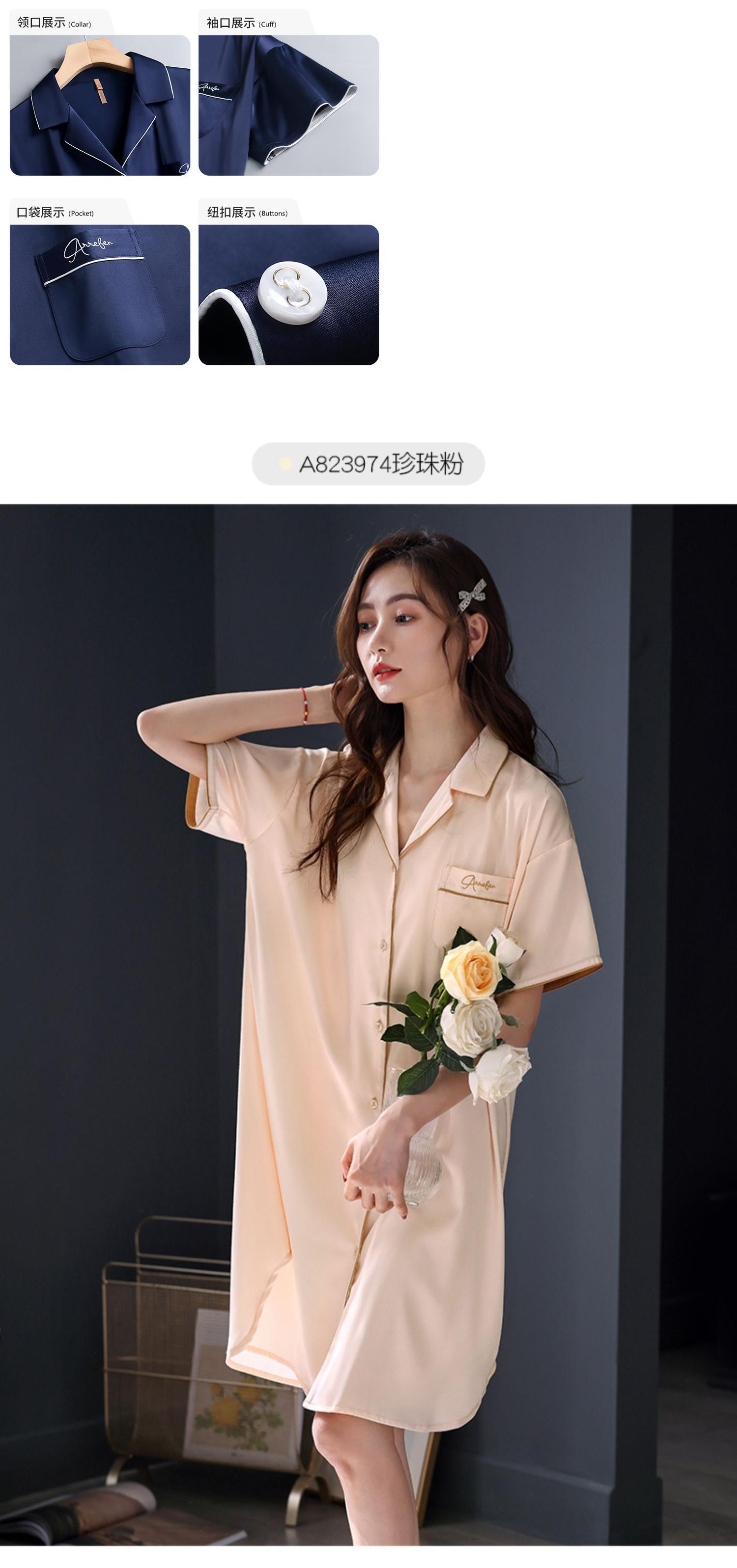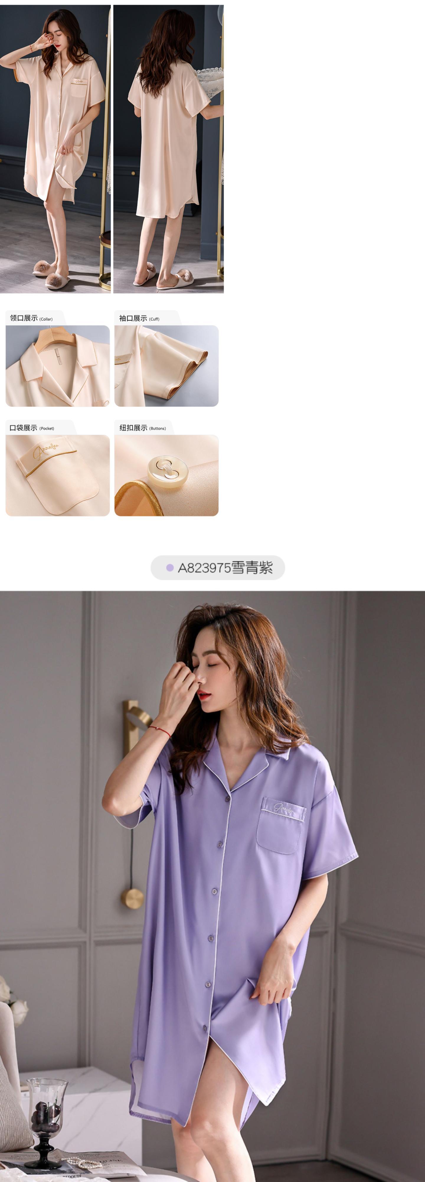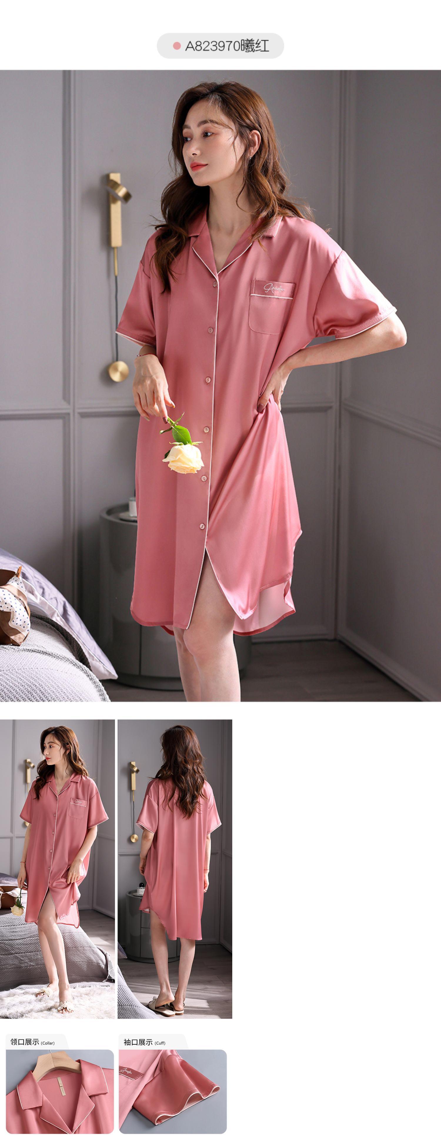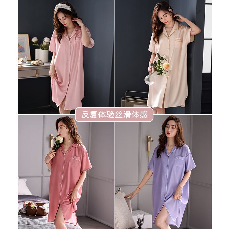 Carrefineネグリジェレディースパジャマ夏夏夏シルクアイスシルク半袖カーディガンシャツロングイミテーションシルク jial65685742056