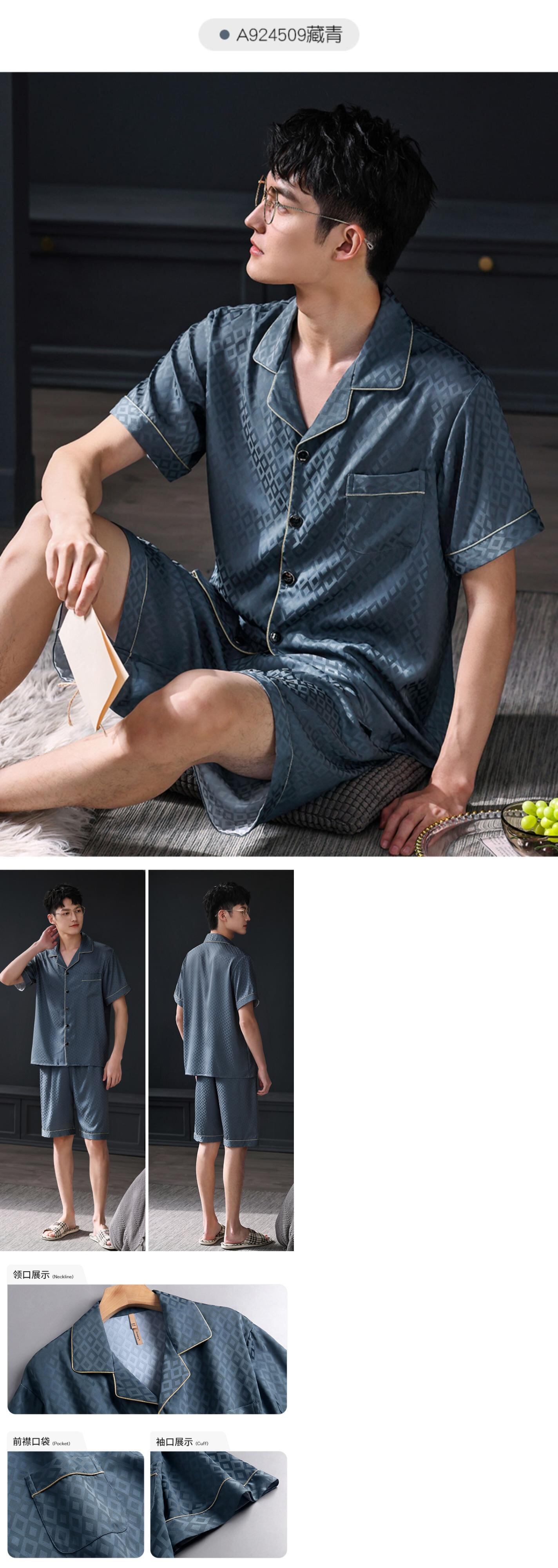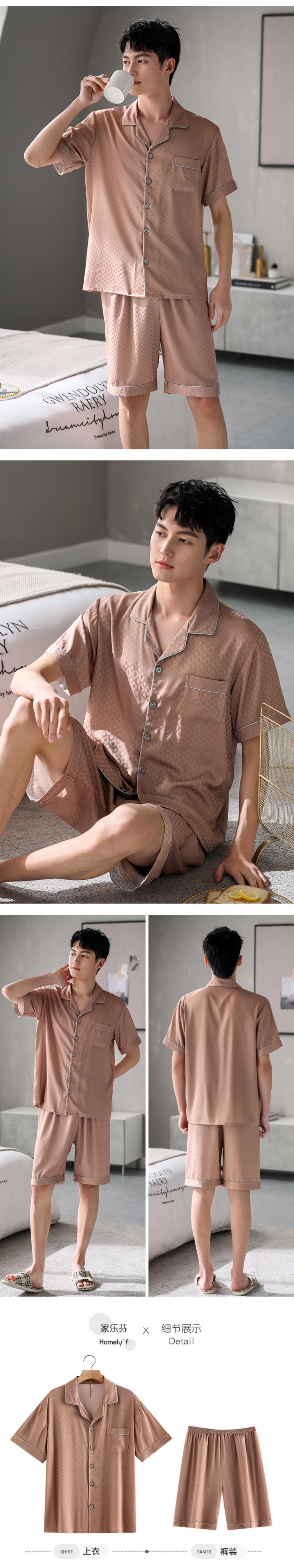 Carrefineパジャマメンズサマーシルクアイスシルク半袖ショーツシミュレーションシルク家庭服メンズサマーサマーモデル jial59171021144