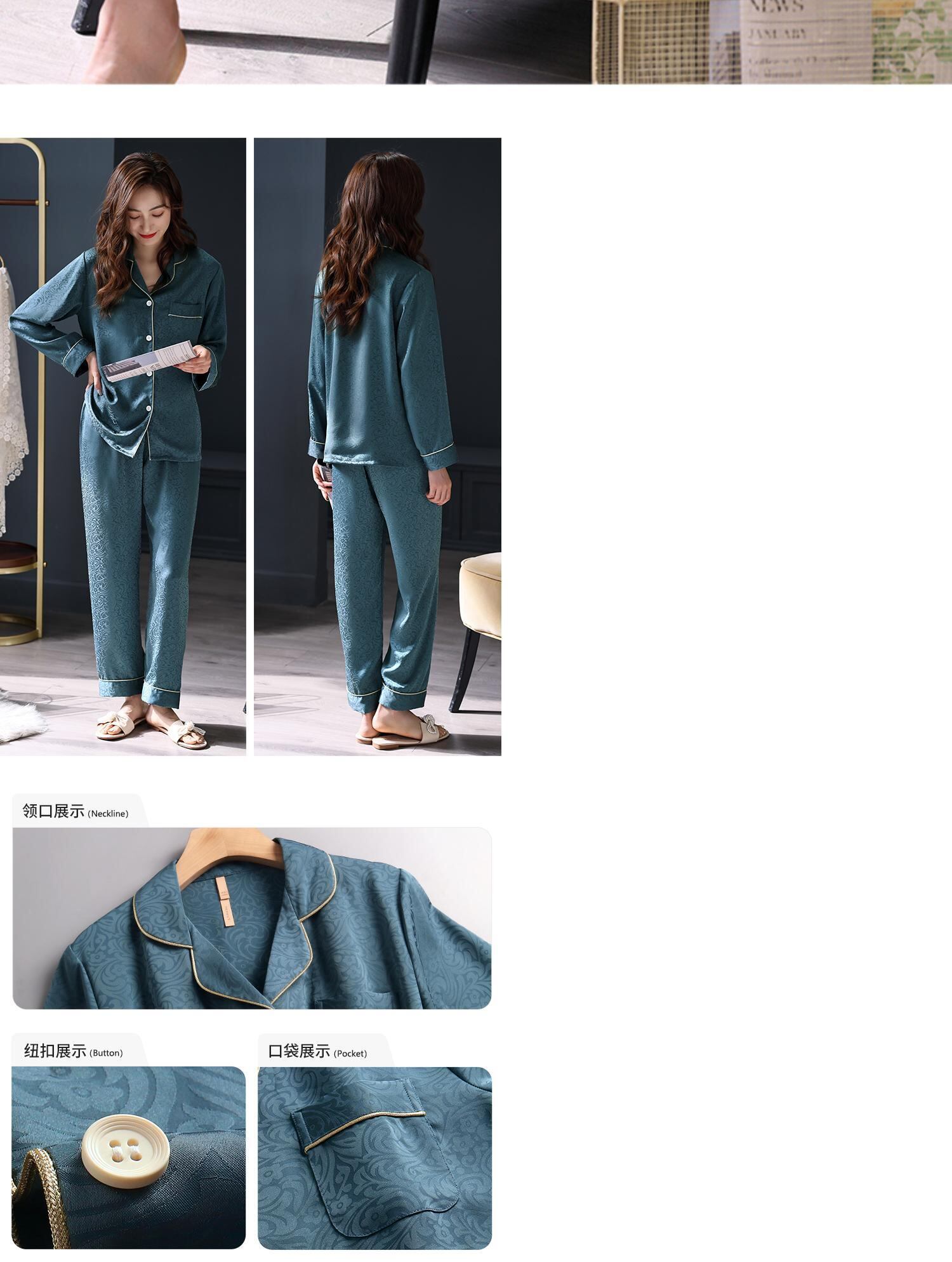 アイスシルクパジャマレディース春秋レディース春長袖高品質シルクシミュレーションシルク夏夏ホームウェア jial6209796278