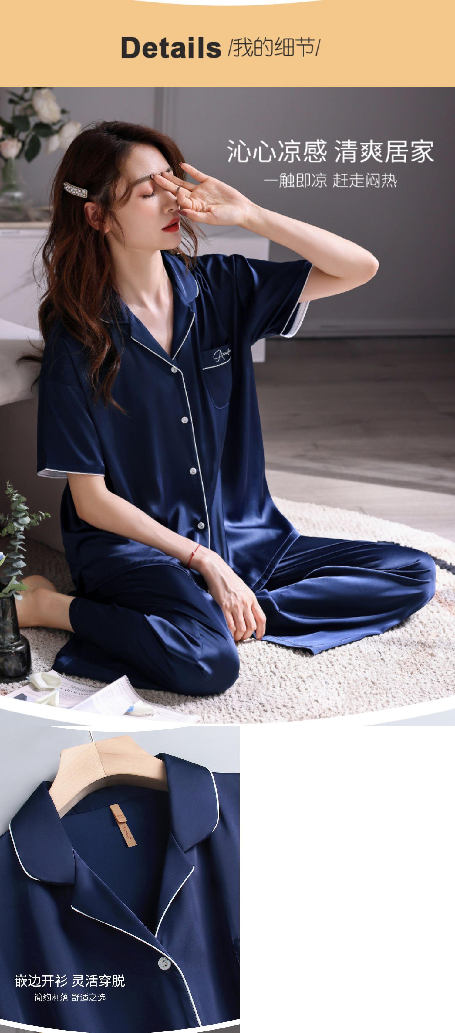 Carrefineパジャマレディースサマーシルクアイスシルク半袖パンツシミュレーションシルクホームサービスサマーサマースーツ jial24201557463