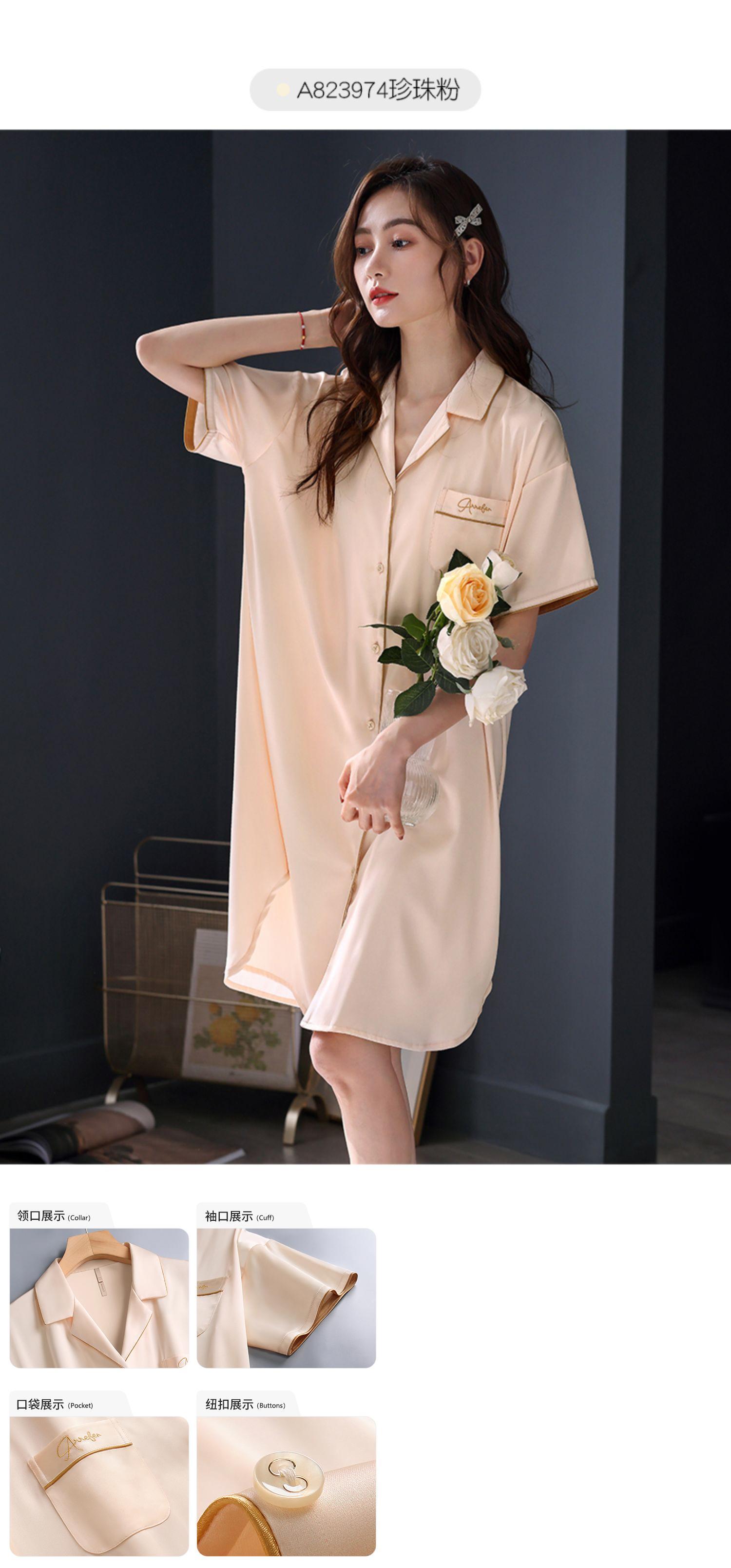 Carrefineネグリジェレディースパジャマ夏夏夏シルクアイスシルク半袖カーディガンシャツロングイミテーションシルク jial8099204568