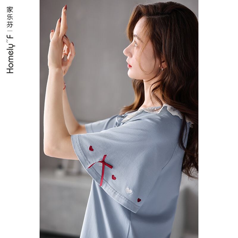 Carrefineネグリジェレディースパジャマ夏夏夏コットン半袖薄手のコットンラージサイズロングプリンセススタイル jial92088573808