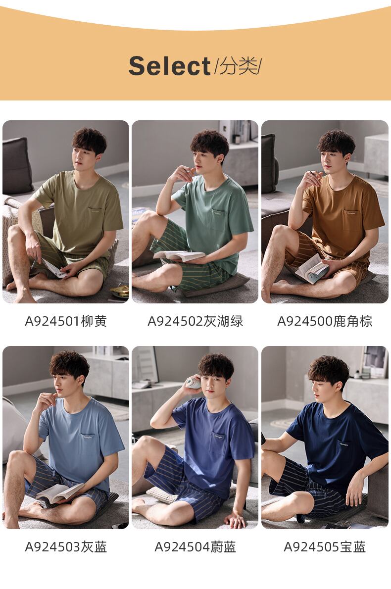 【やわらかい感じ】Jiarefenパジャマメンズサマーコットン半袖ショーツホームサービスメンズサマーサマースーツ jial80343915303