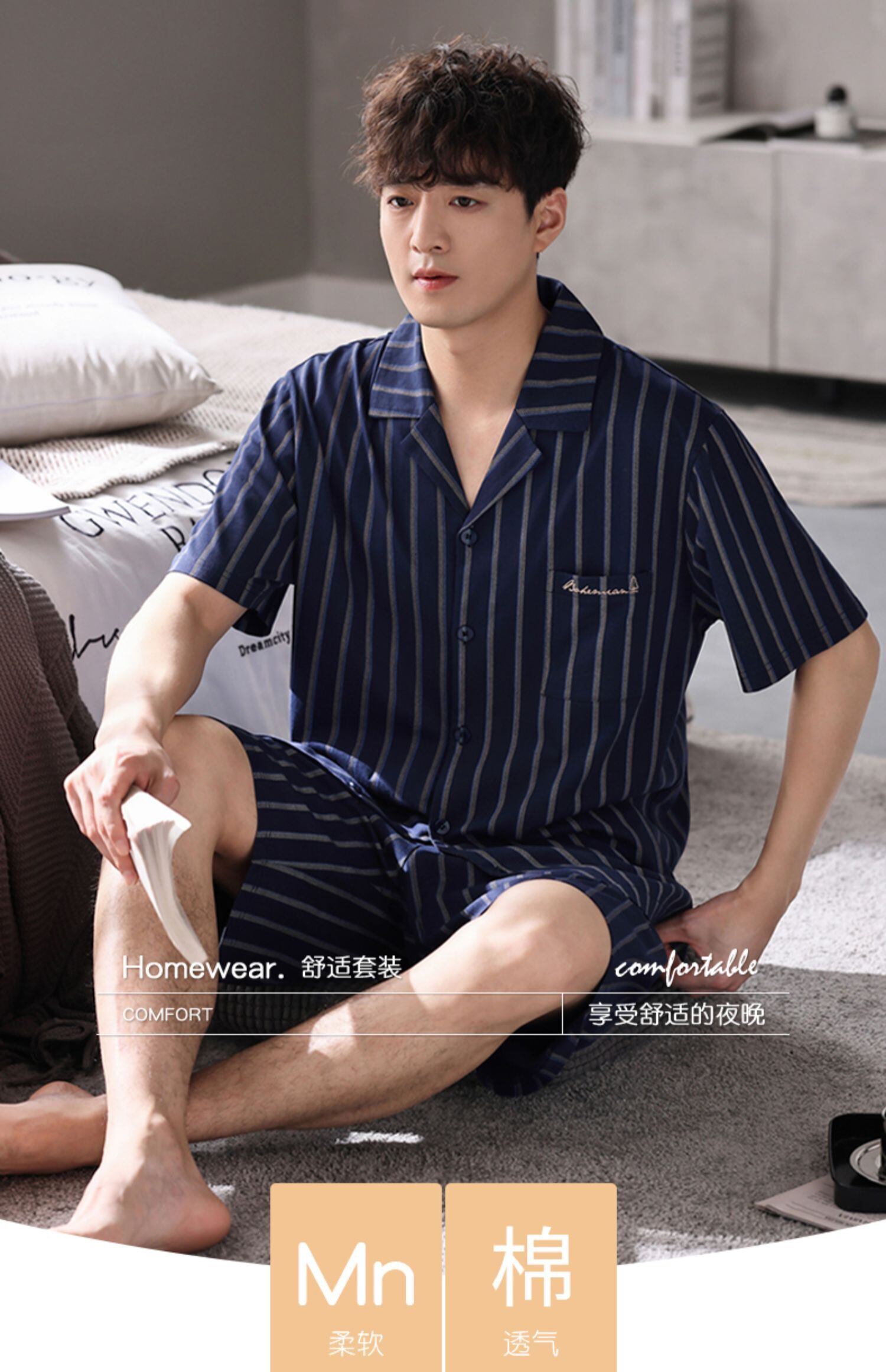 【やわらかい感じ】Jiarefenパジャマメンズサマーコットン半袖ショーツホームサービスメンズサマーサマースーツ jial750630663