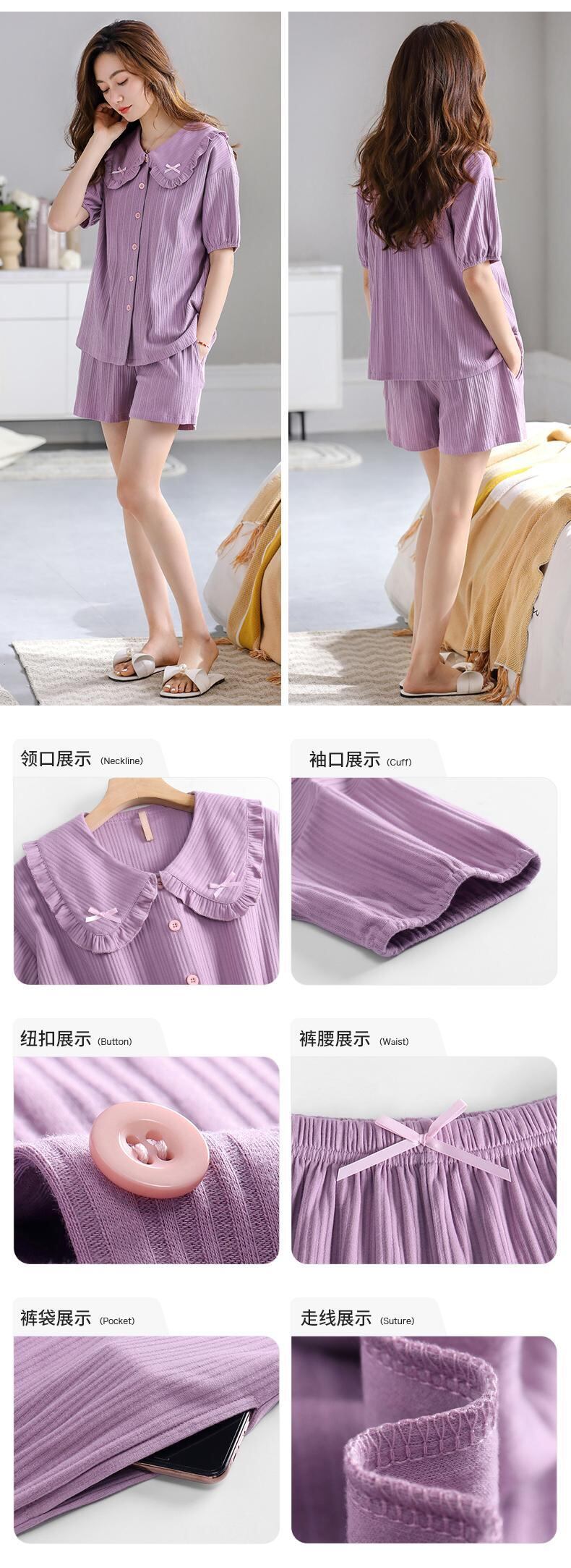 Carrefineパジャマサマーコットン半袖ショーツカーディガンホームウェア夏夏ラージサイズかわいいスーツ jial46103993657