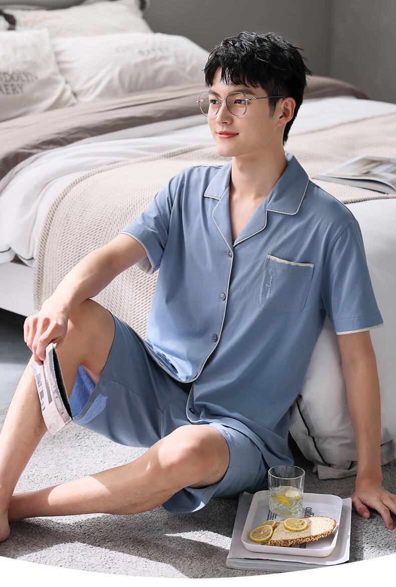 【やわらかい感じ】Jiarefenパジャマメンズサマーコットン半袖ショーツホームサービスメンズサマーサマースーツ jial21745065728
