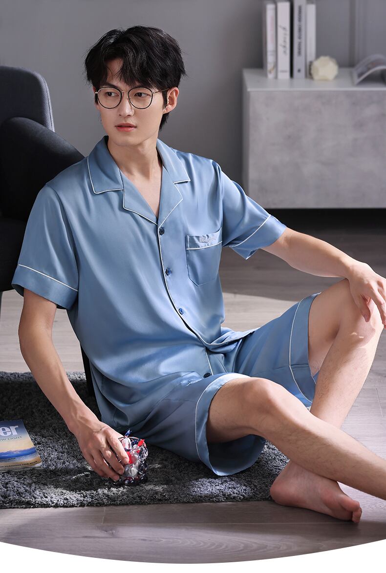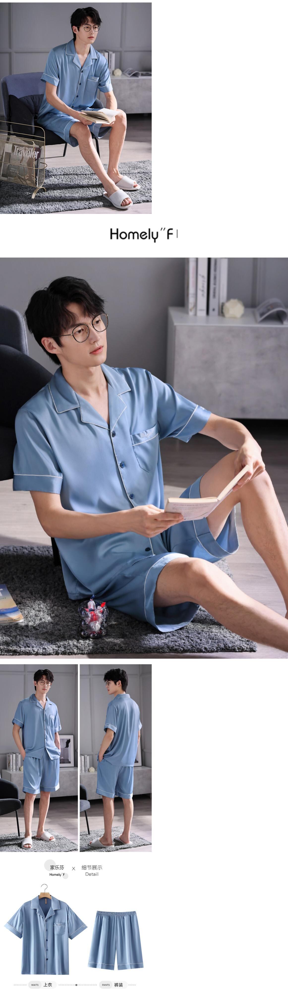Carrefineパジャマメンズサマーシルクアイスシルク半袖ショーツシミュレーションシルク家庭服メンズサマーサマーモデル jial19264126452