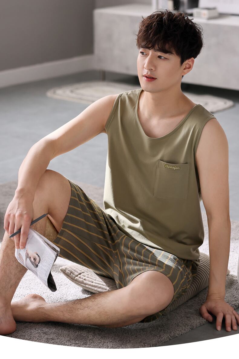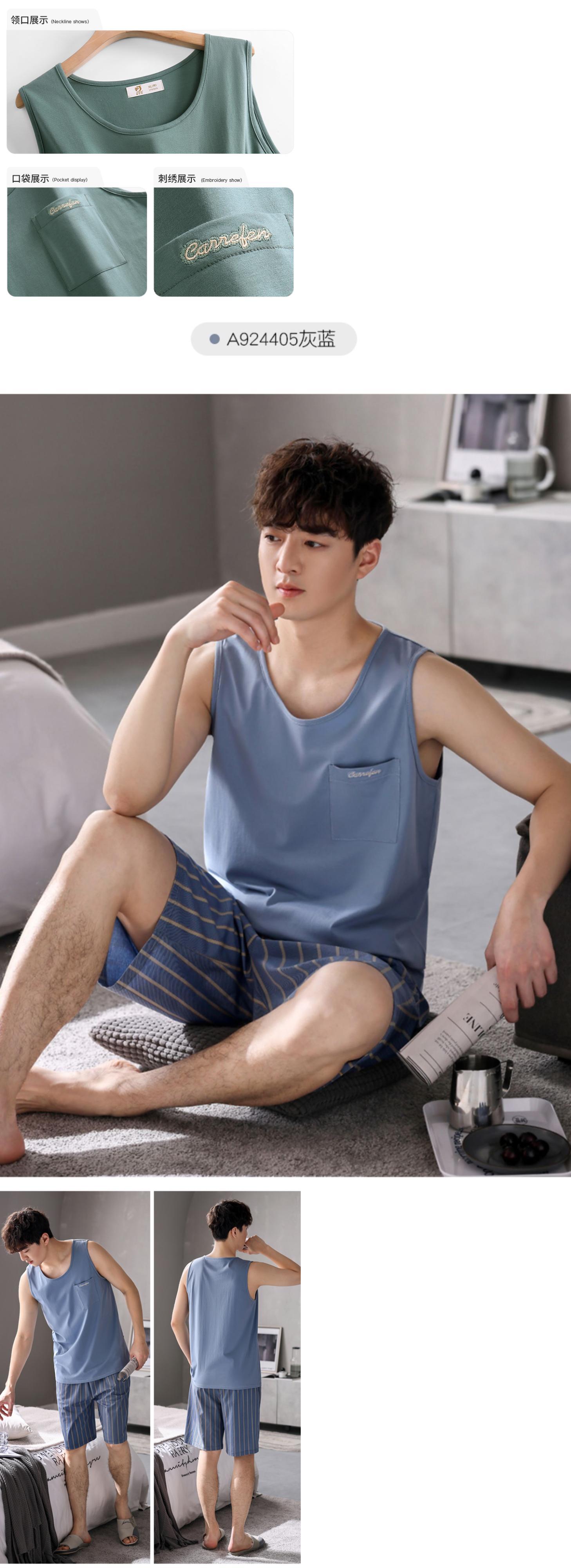 Carrefineパジャマメンズサマーベストノースリーブショーツコットンホームウェアメンズサマーサマーラージサイズスーツ jial20632013804