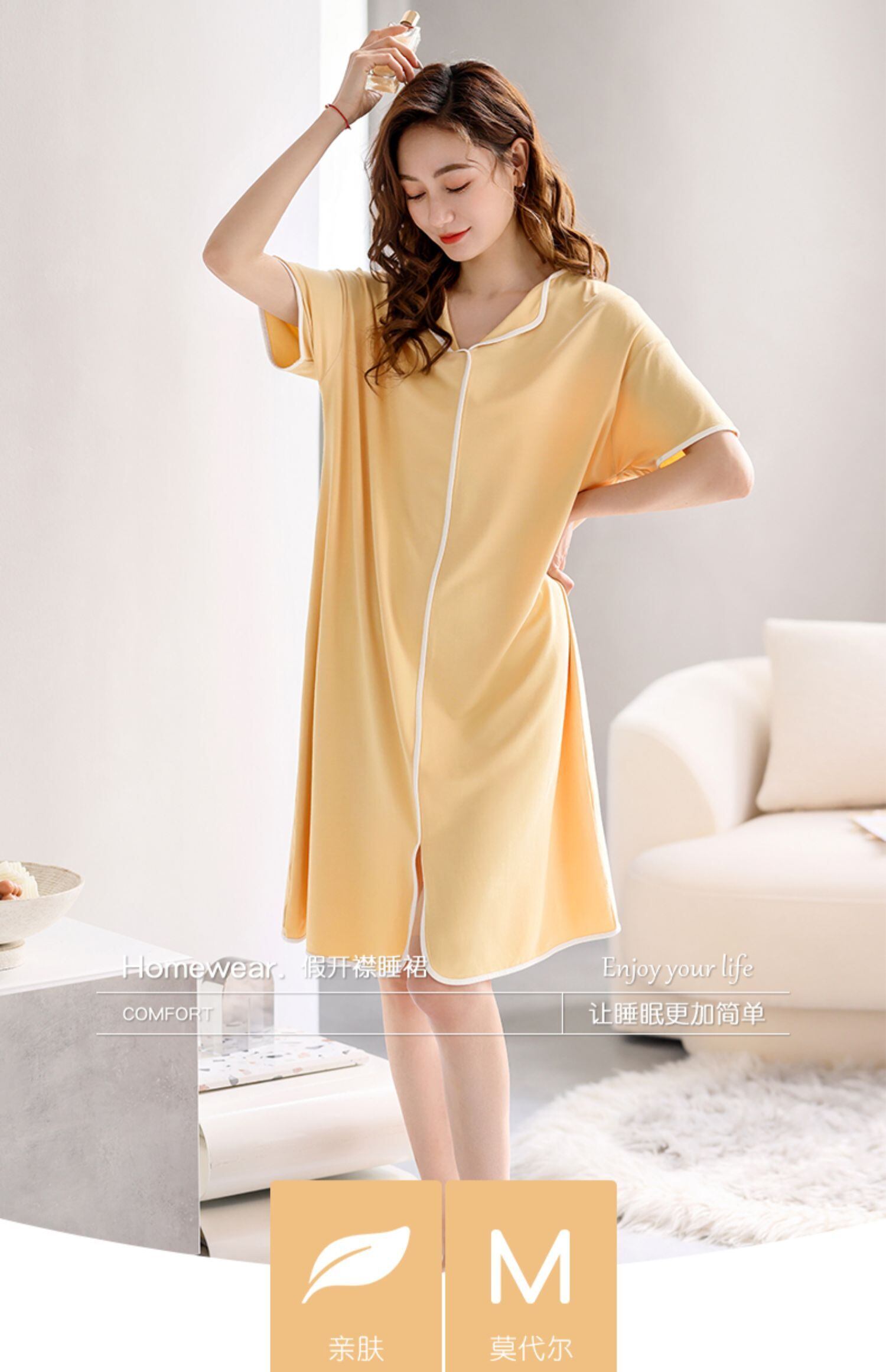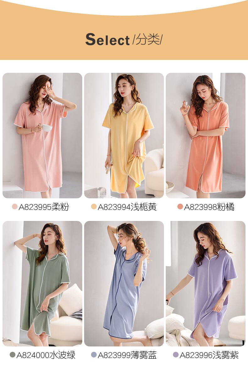 Carrefineネグリジェレディースパジャマ夏夏夏モーダル半袖高級ロングプラスサイズのドレス jial92324579721