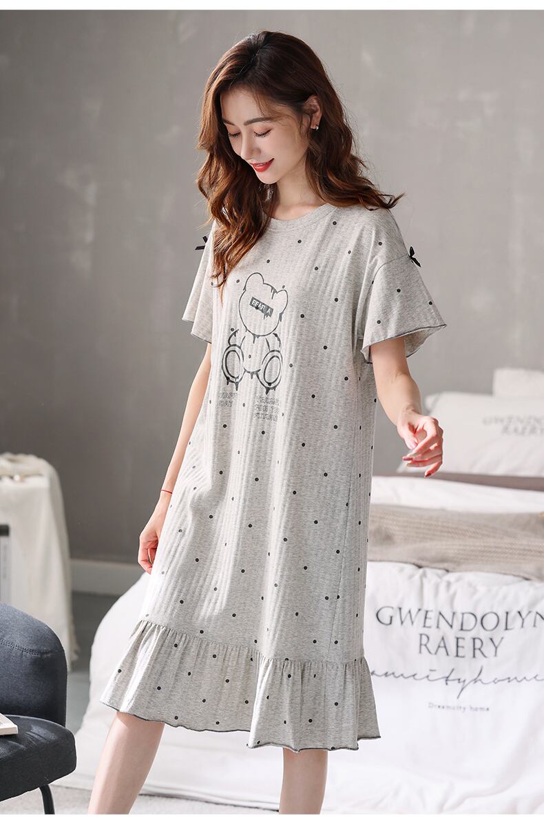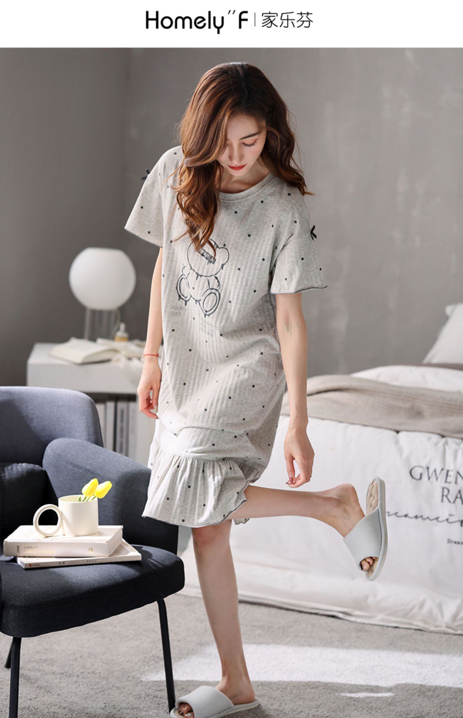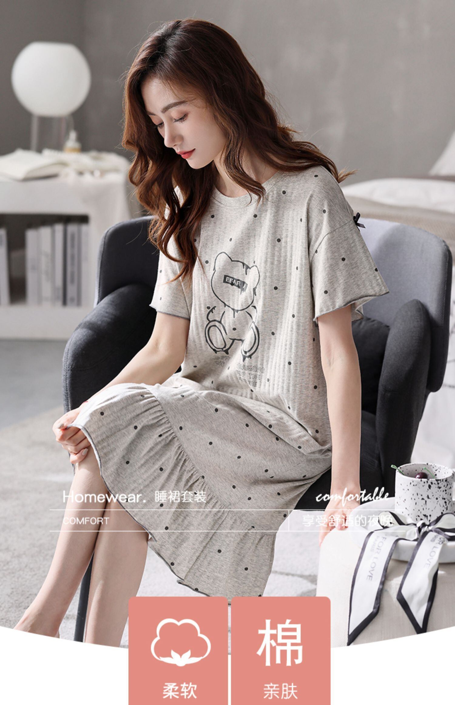 Carrefineナイトドレスパジャマ夏夏夏コットン半袖ロングドレスかわいいプラスサイズ jial80551396889